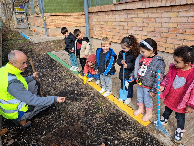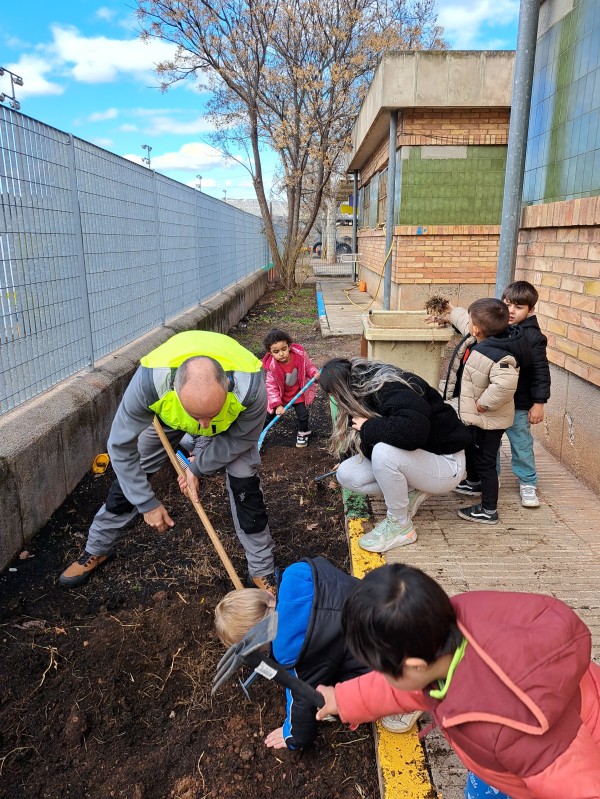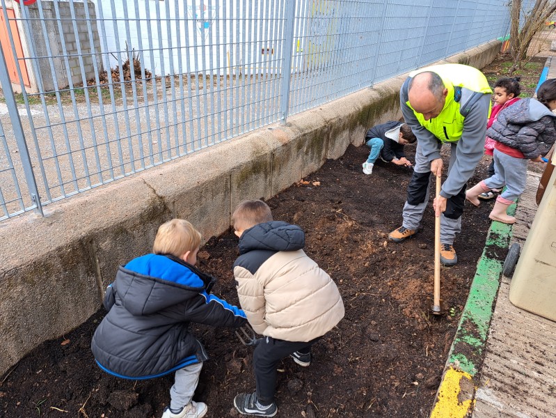 Aquest matí amb l’ajuda del conserge Rafa, hem començat a preparar el terreny per poder fer el nostre “Hort” i començar a plantar. L’objectiu del nostre teixit d’aula és fer créixer enciams a l’escola.