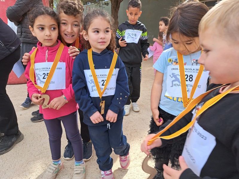 Hem parlat de la piràmide de l’alimentació. De la importància que hem de menjar de tot i fer una dieta equilibrada. També hem observat els esmorzars i hem vist en quina franja els podem classificar (fruites, feculents, làctics,…) I avui divendres ha estat el dia més esperat amb la celebració del Cros Escolar on hem participat tota l’escola .