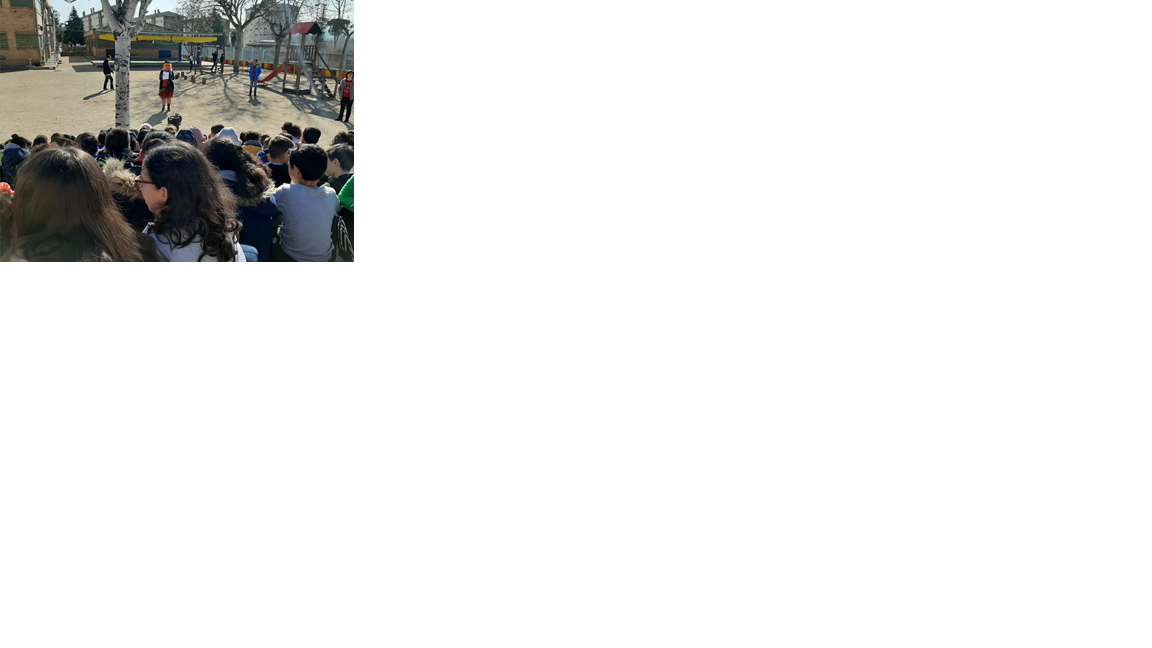 Els nens i nenes de sisè es van encarregar de supervisar a la resta de classes per tal que tothom respectes les consignes de la reina. Alguns dels nens i nenes de 2n ens van pintar el nas perquè no vam respectar totes les consignes.