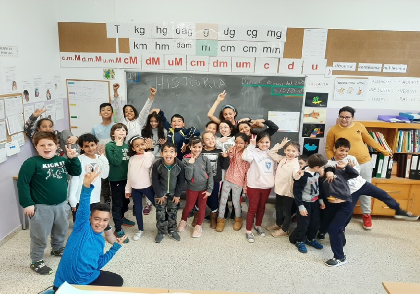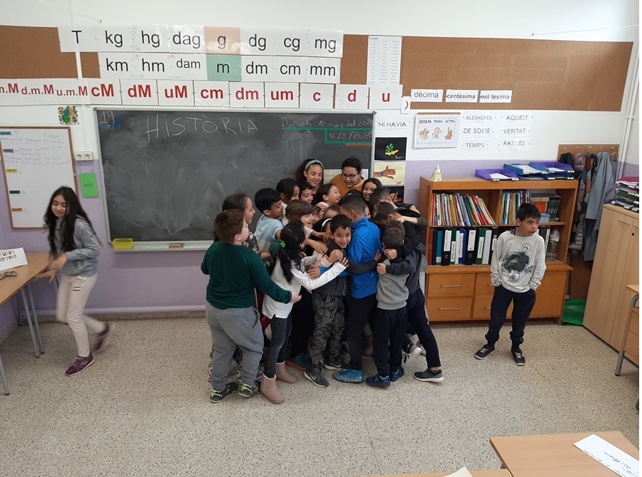Els nostres padrins d’història, els nens i nenes de 5è, ens van explicar les diferents etapes de la història fent un petit recorregut per l’escola. Vam aprendre moltíssims coses sobre les diferents etapes, a més a més, vam veure que amb constància i esforç es pot aconseguir allò que et proposes. Ens va agradar molt i només tenim paraules d’agraïment per la feina que han fet.