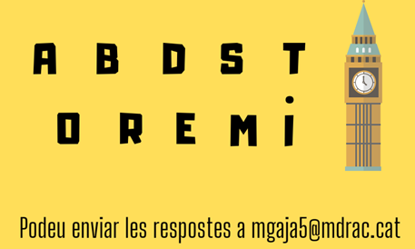 REPTE 8 1 comentari / Per admin / 30 d'abril de 2020 / Reptes Primària REPTE 8 REPTE D’ANGLÈS QUANTES PARAULES POTS FER EN ANGLÈS UTILITZANT LES LLETRES SEGÜENTS? YOU CAN DO IT !!!