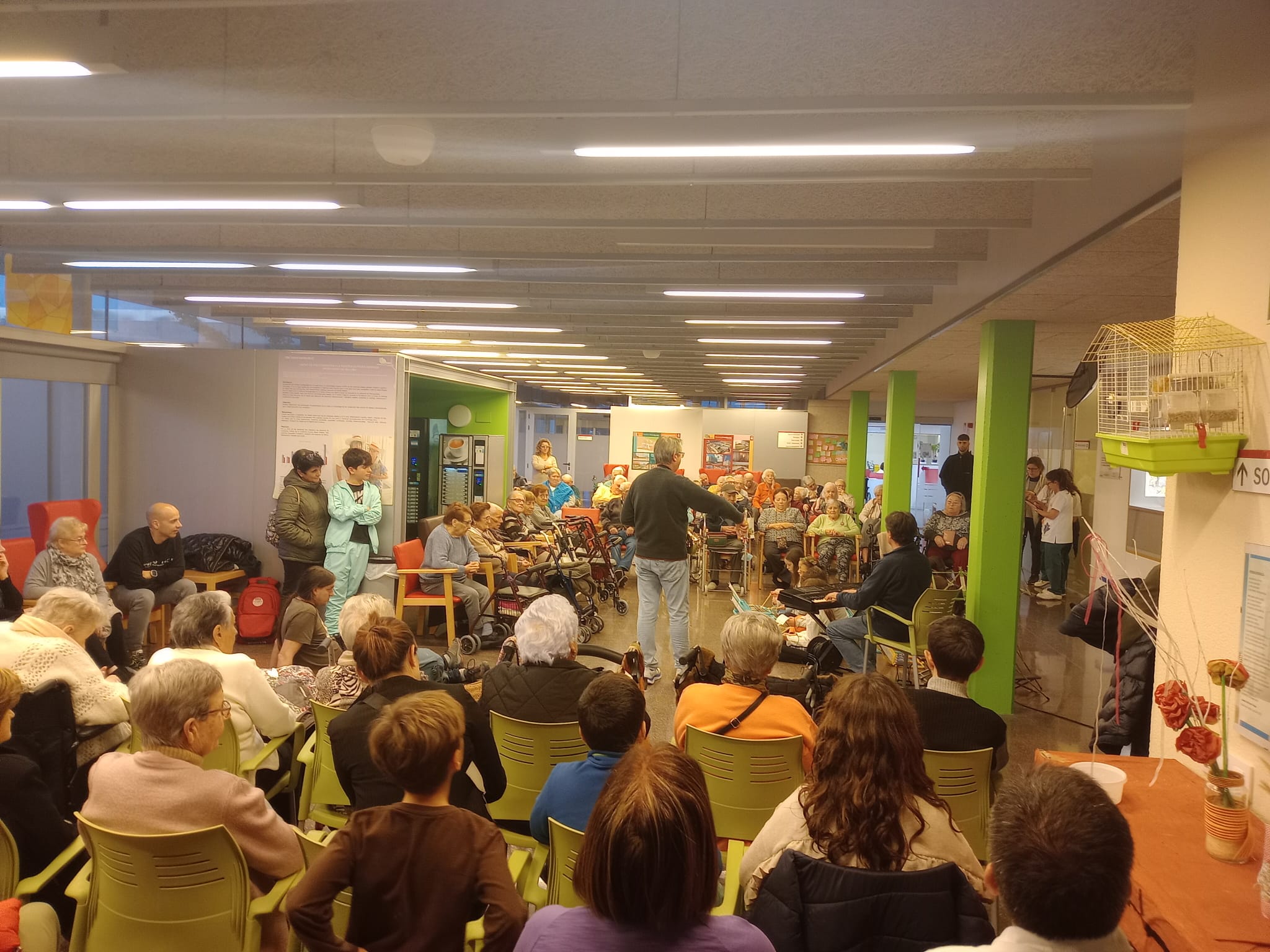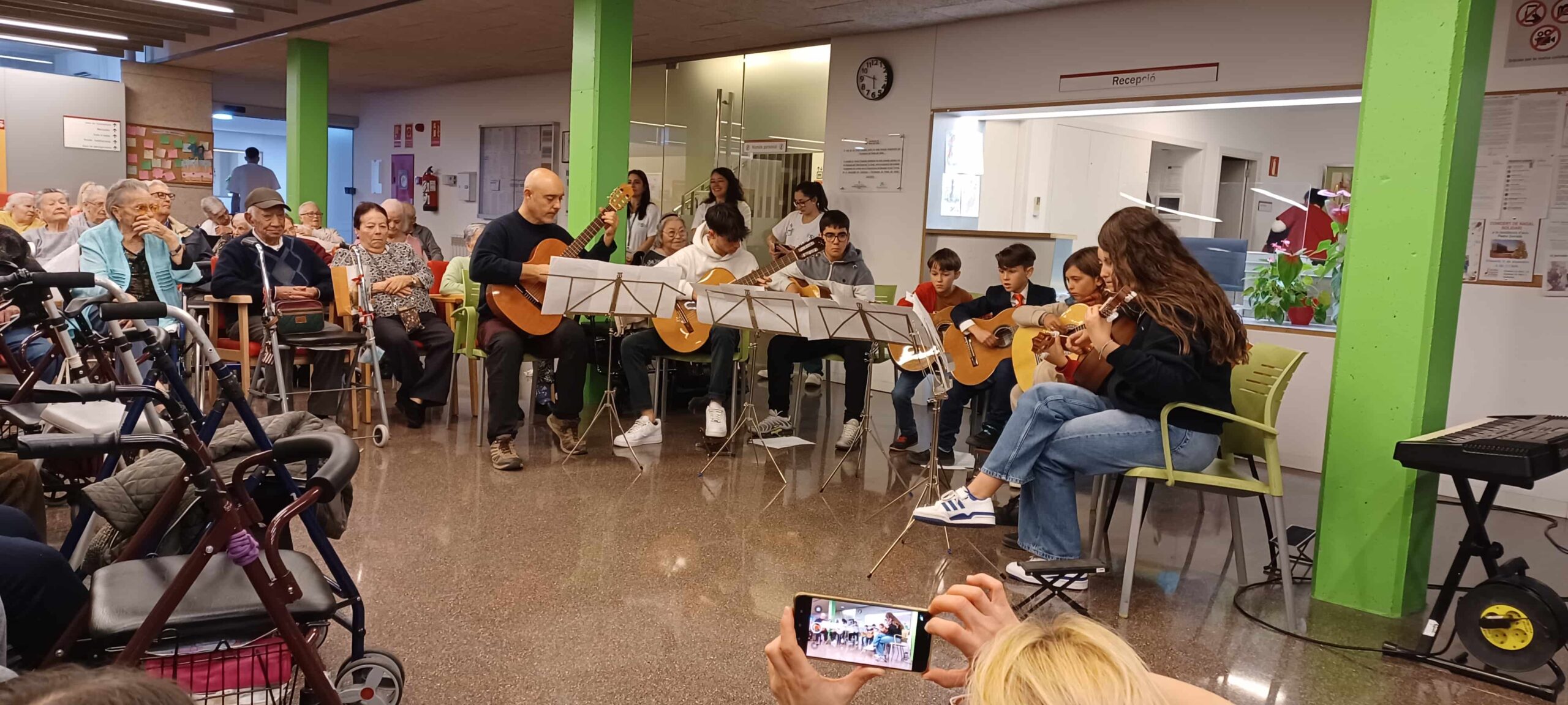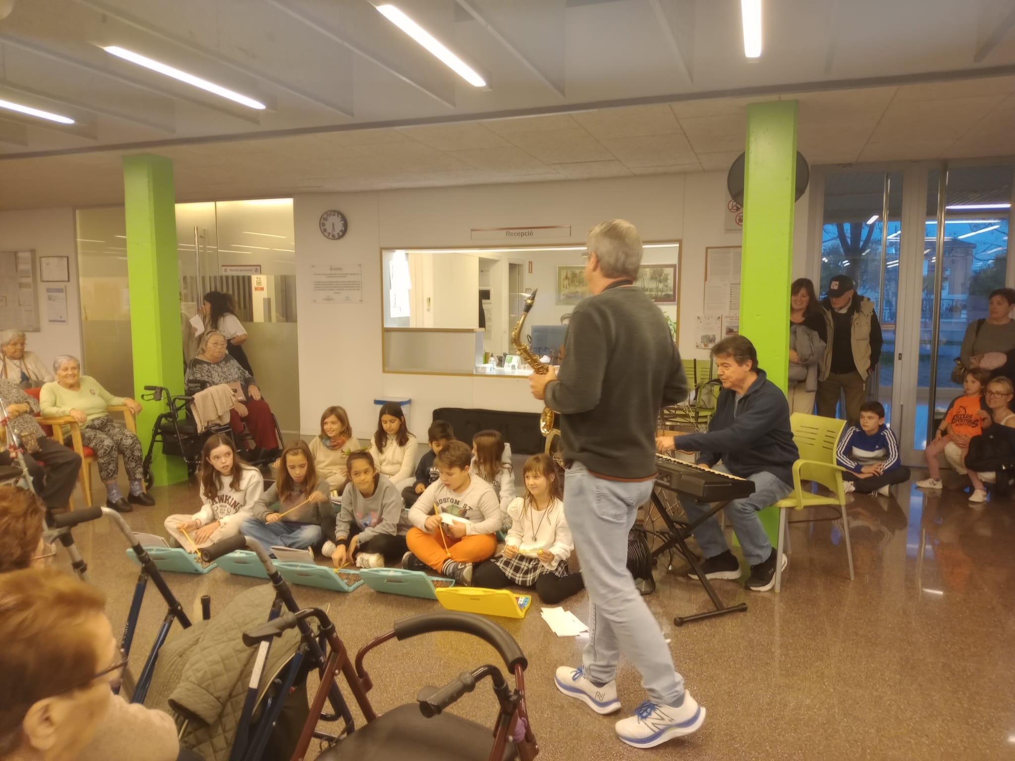 Avui, 3 de desembre de 2024, una representació de l’escola municipal de música hem anat a la residència Pedra Serrada de Parets per oferir-los un petit Concert de Nadal. Han participat els alumnes de Bàsic 1B i Bàsic 2 que han cantat i tocat carillons, i l’orquestra de guitarres que han ofert el seu repertori més divertit on han pogut participar i gaudir les àvies i avis cantant i tocant palmes. Com sempre, les àvies i avis ens han obsequiat amb unes manualitats com a regal de Nadal.