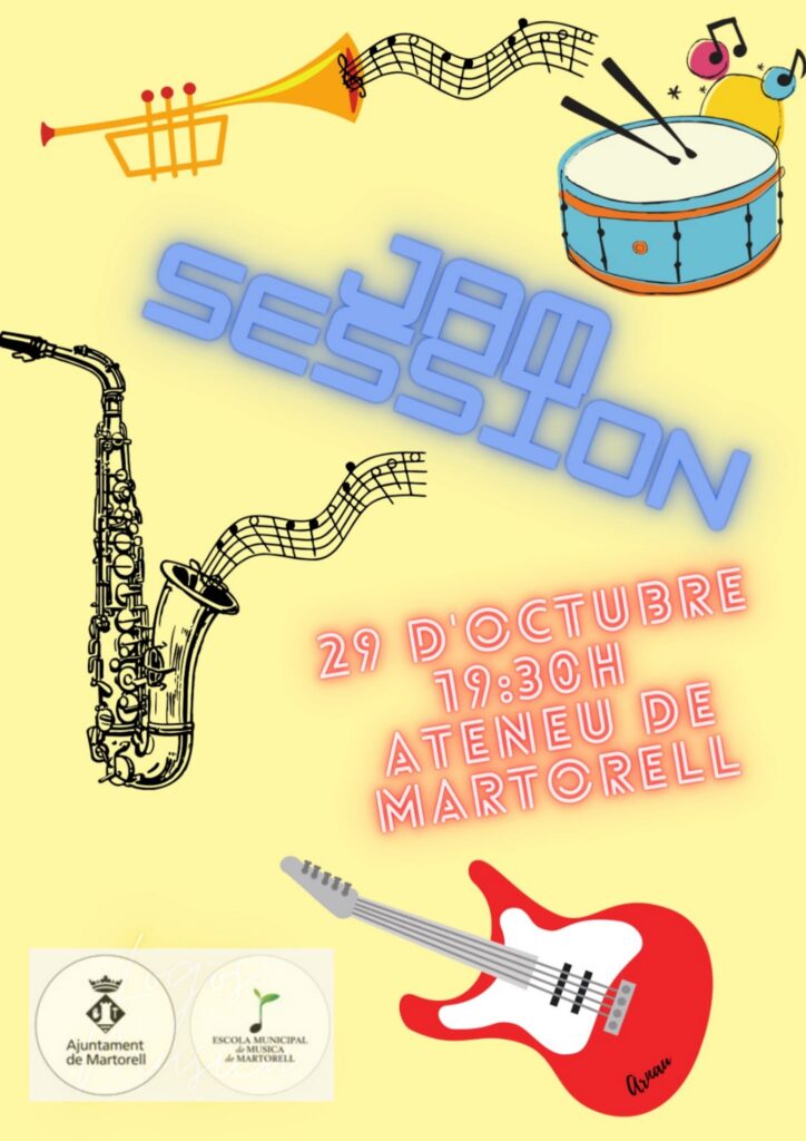 Un cop iniciat el curs, ja estem a punt per compartir música. En aquest cas buscant l’espontaneïtat dels intèrprets en el format propi de la Jam, a més també, com a banc de proves dels combos de l’Escola de Música de Martorell. Com encara s’han de mantenir algunes mesures, es conserva la pissarra virtual a on tothom que vulgui participar es pugui apuntar prèviament (si encara no sabeu com fer-ho consulteu amb el professorat o envieu un mail a l’escola). De totes maneres, per mantenir l’esperit de la Jam, podeu participar in situ consultant a l’organització en el mateix moment de la Jam.