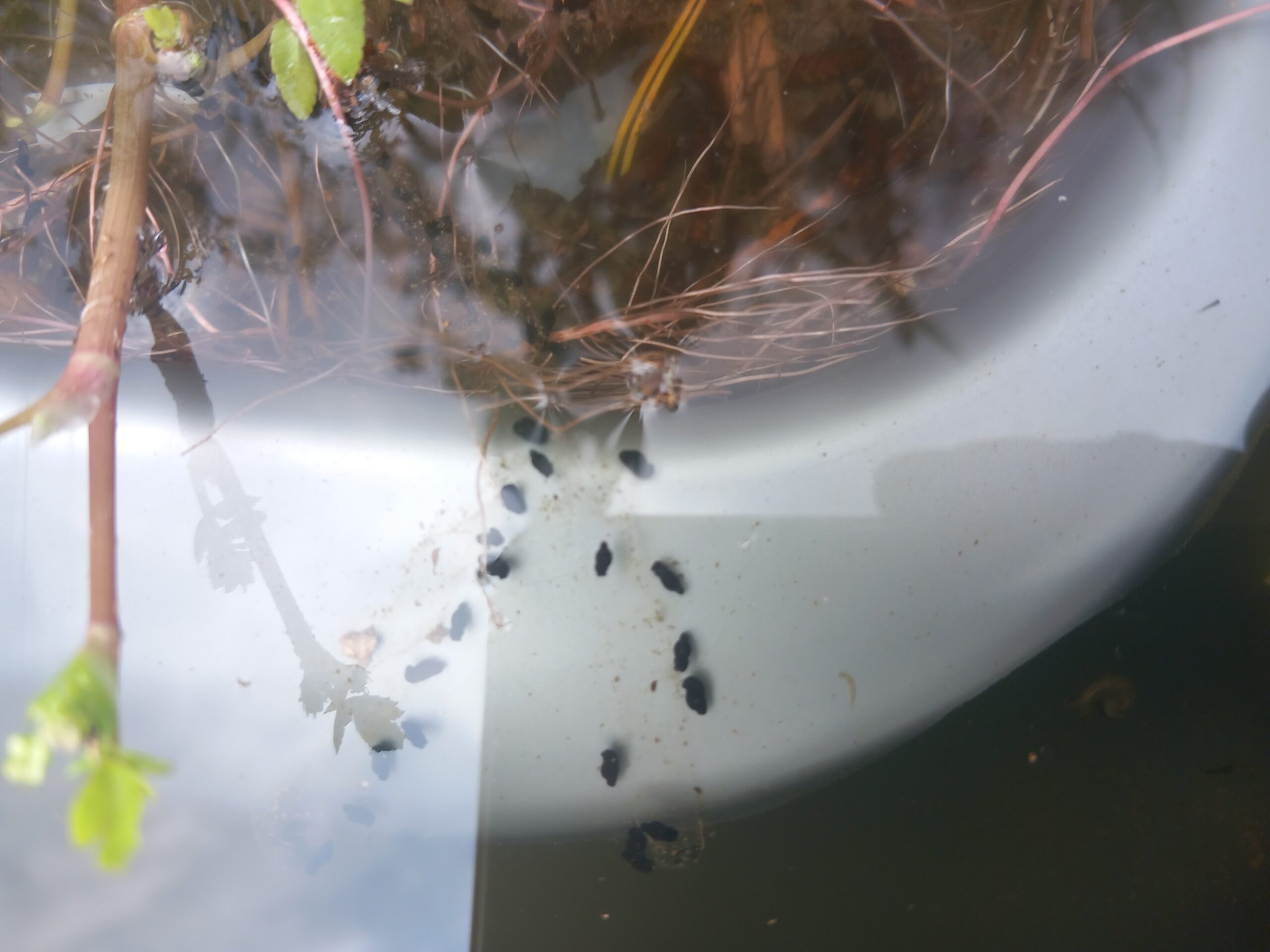 Aquesta bassa comença a ser una realitat, ja té algunes plantes, pedres, terra, i des d’aquest cap de setmanes ja tenim un gripau vivint i no només això, sinó que ha post un munt d’ous que d’aquí a uns dies es convertiran en capgrossos.
