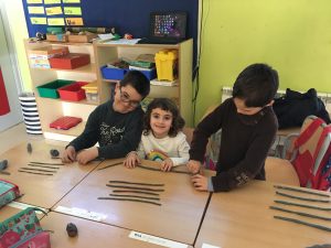 Els alumnes de P5 i de CI han creat pentagrames i claus de sol en plastilina! Per aprendre com s’escriu la música primer hem
