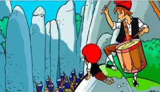 De sobte va veure que els francesos s’acostaven i com sabia que el so del timbal ressonava per les muntanyes, va començar a repicar i repicar.