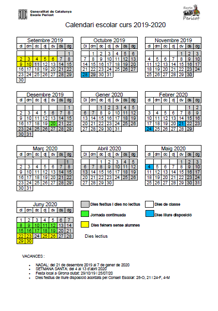 Calendari per al curs 2019-20