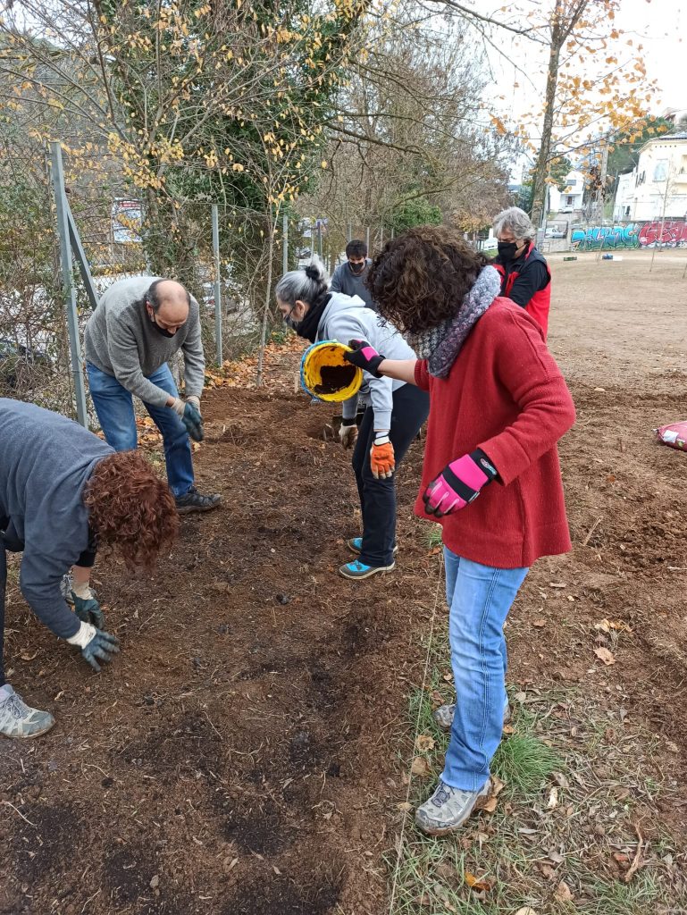 Aquest curs la Comissió Verda de l’escola (formada per pares, mares i mestres) té entre els seus objectius la creació d’una petita parcel·la d’hort dins el pati de la zona de darrera de l’escola, una zona de terra que pertany a l’Ajuntament i que ens han cedit temporalment per poder lluitar millor contra la covid-19,