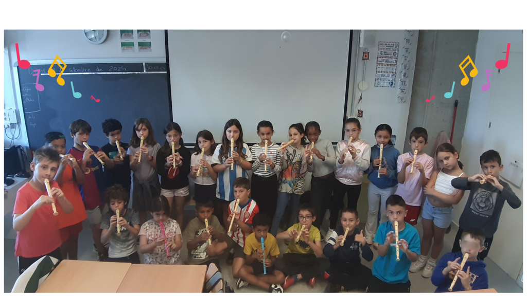 Quina emoció! Els nens i nenes de 3r avui hem començat a tocar la flauta! Tots i totes teníem moltes ganes de començar, avui hem parlat de com tractar la flauta, com posar els dits, com bufar bé… i au, a fer música! Ben aviat us podrem ensenyar les cançons que anirem aprenent!