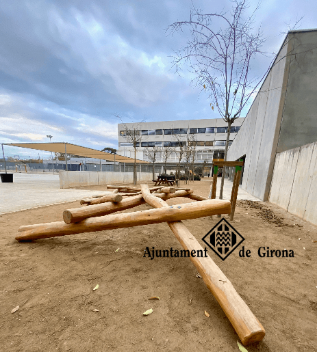 Gràcies a la subvenció “Activa el teu pati” de l’Ajuntament de Girona, s’ha pogut instal·lar un mikado, una estructura de pals de fusta que permet a l’alumnat mobilitzar el seu cos i utilitzar-la en hores d’esbarjo, a Educació Física i tallers.