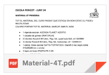 Els alumnes, de cicle inicial (1r i 2n), cicle mitjà (3r i 4t) i cicle superior (5è i 6è), cal que portin el primer dia d’escola el material que trobareu a les llistes adjuntes. Recordeu, el que pretenem amb aquesta iniciativa, és que els alumnes més grans es facin responsables del material escolar.