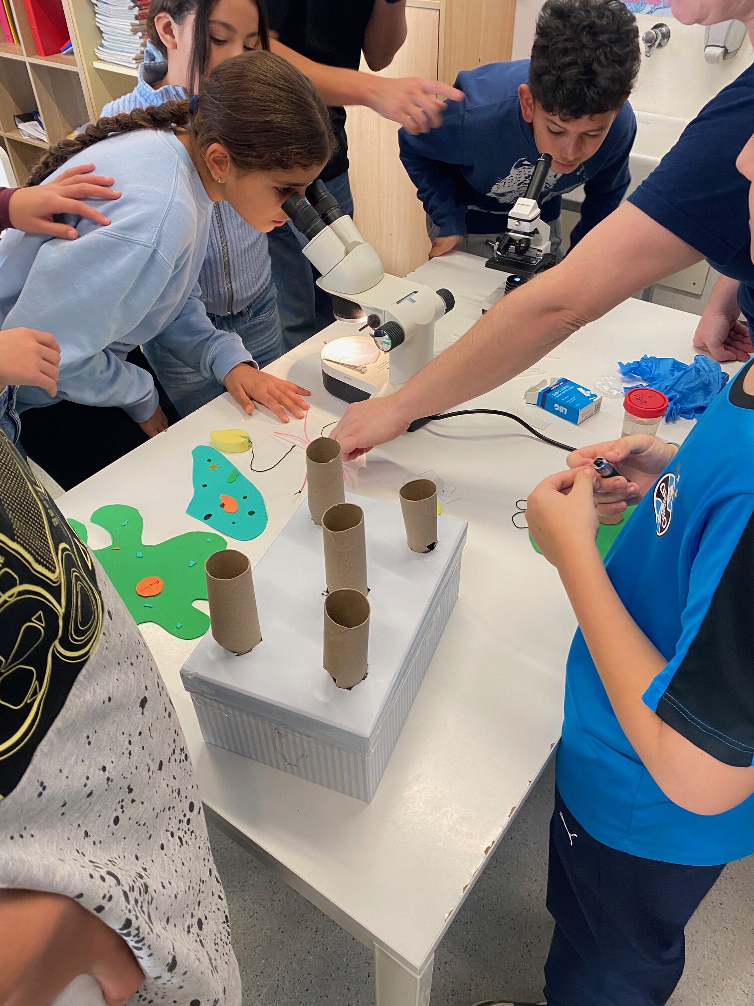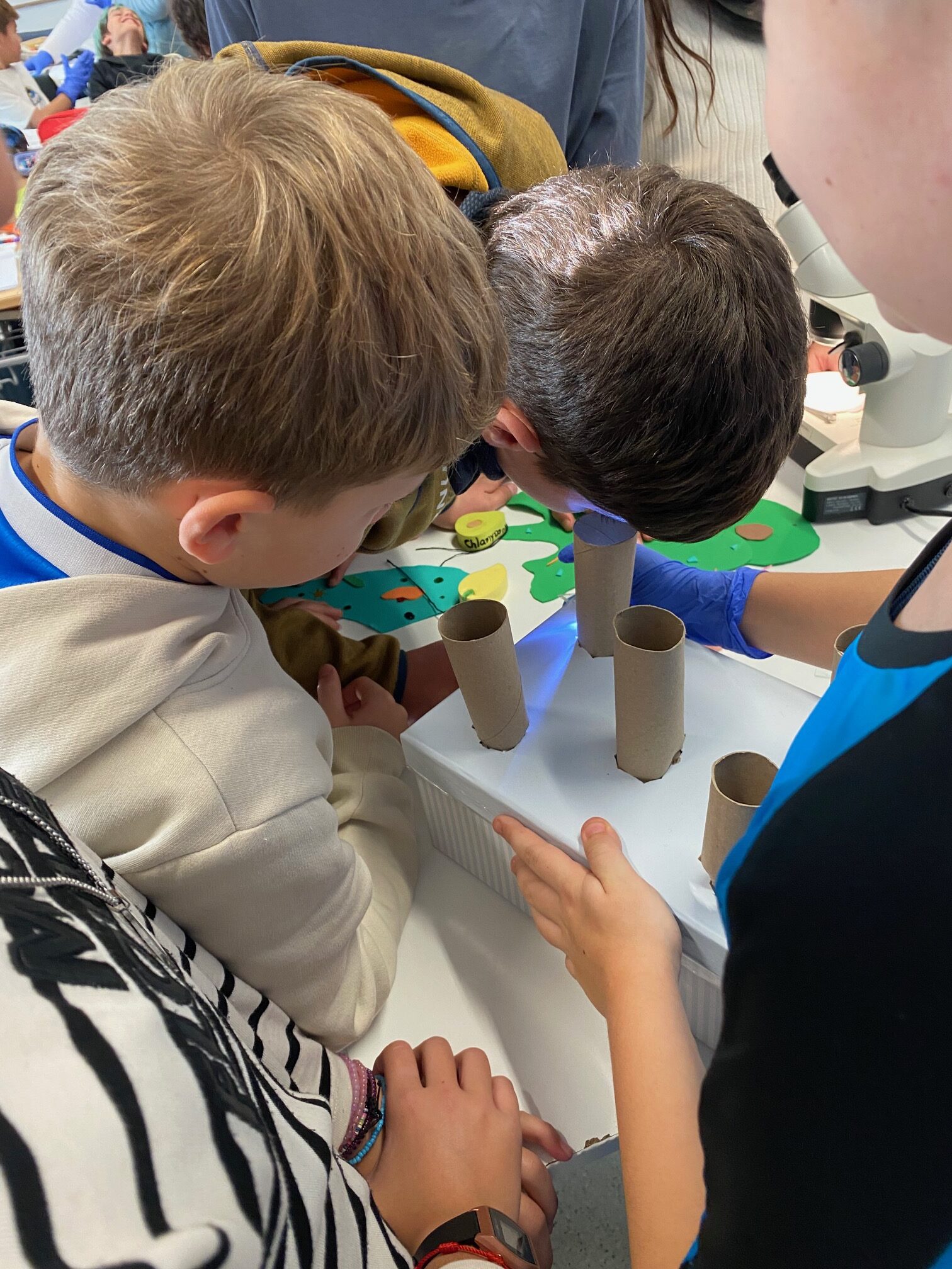 En aquest sentit, hem vist que hi ha vides molt petites, tant que no es poden veure a ull nu, però que juguen un paper clau en la vida del nostre planeta. Aquest és el cas dels bacteris o dels protozous. Però, com sabem que existeixen si no les veiem? Com són? Això és el que vam investigar amb una visita molt especial, una família de 5è B, la mare d’en M. N. i el seu germà gran. Us ho expliquem!