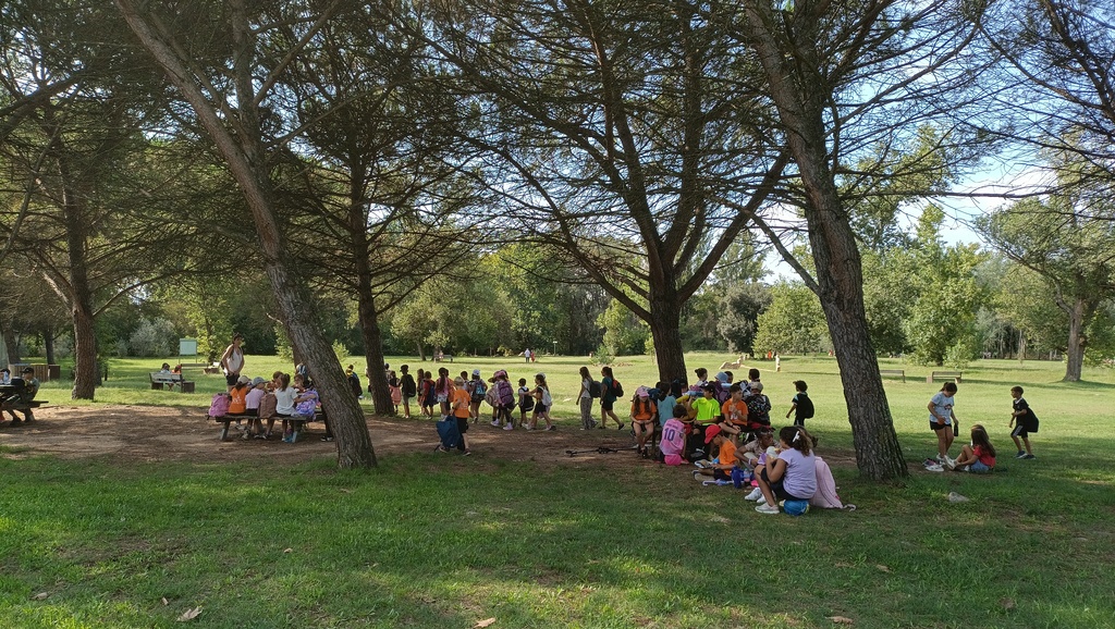 Aquesta setmana tots els nens i nenes de cicle mitjà hem fet una sortida d’entorn per la ciutat. Cap a les 09:30 hem sortit de l’escola, caminant pels carrers, fins arribar el parc de la Rosaleda. Just davant hem vist com comencen a muntar les fires, ja tenim ganes d’anar-hi a fer una volta, i