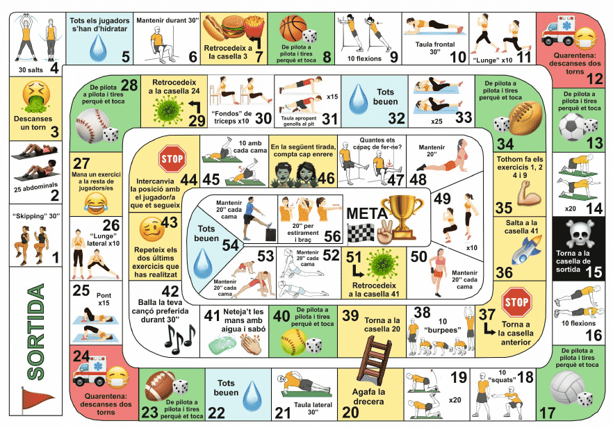 Hola a tothom! avui va de jocs de taula modificats perquè treballeu l’Educació Física! Si piqueu a la foto us la podeu descarregar, imprimir i jugar amb tota la família!