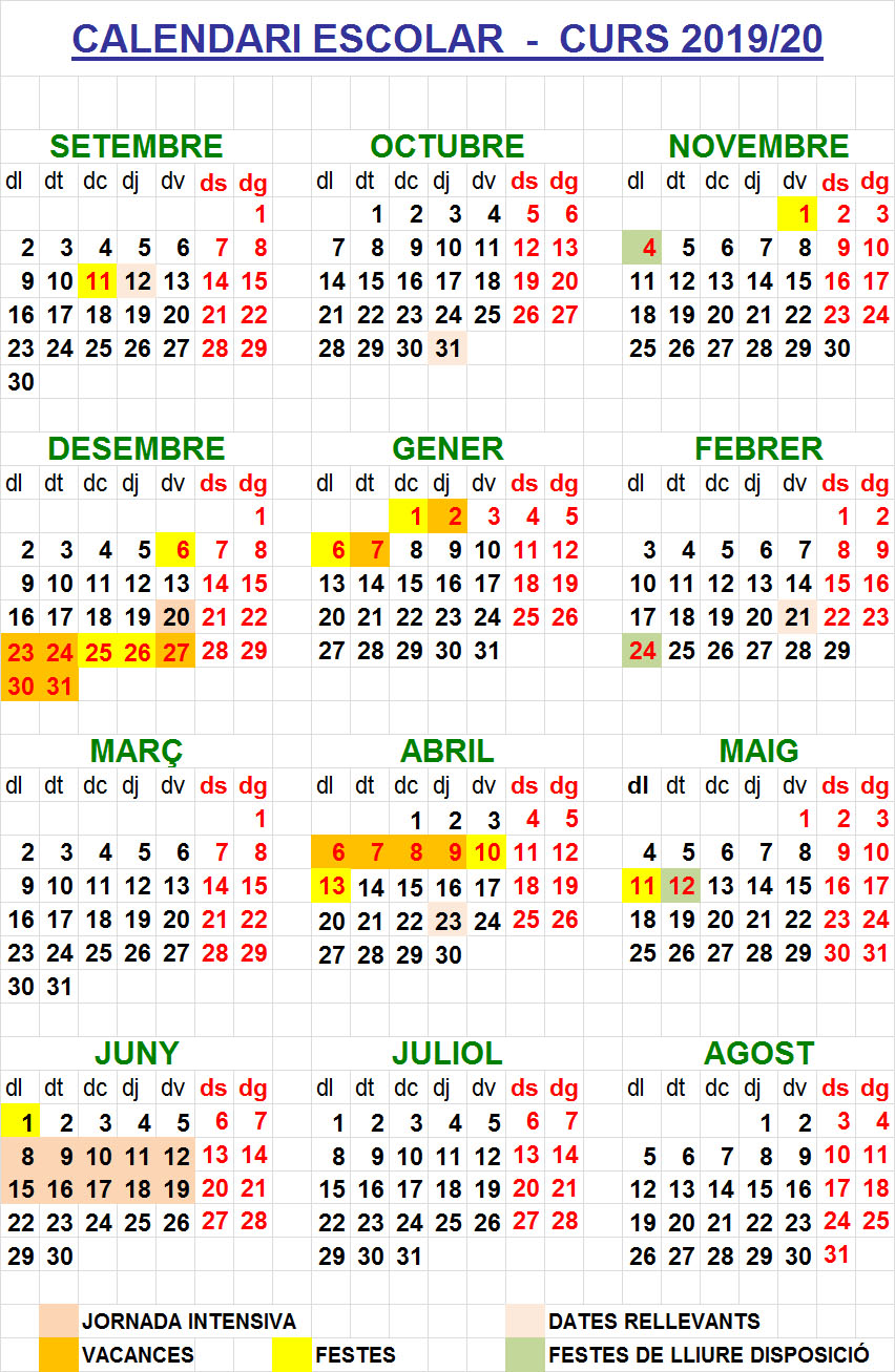 En la imatge es pot veure el calendari i en l’enllaç, explicat.