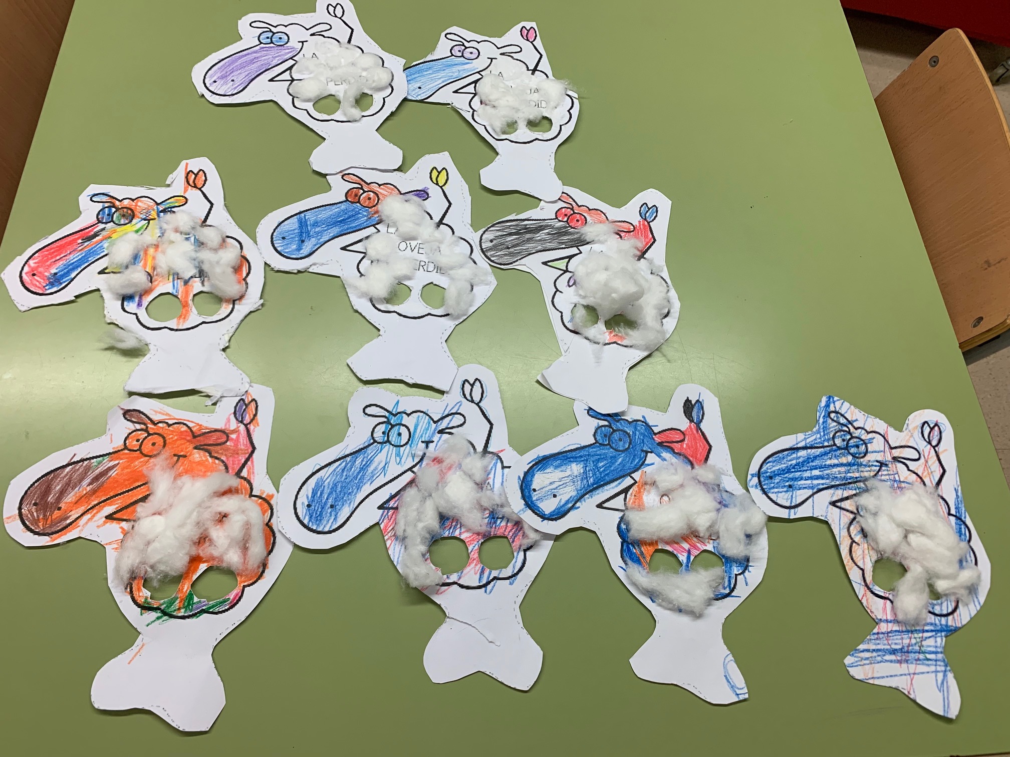 Vam llegir el conte de l’ovella perduda, vam cantar la cançó de l’ovella perduda de Valivan, a través d’un videoclip i vam veure el video de la parábola de Valivan i a més, després d’haver treballat anteriorment una manualitat d’una ovella, com els va agradar tant, hem tornat a fer una altra manualitat d’ovella diferent, en la qual cada nen/a va decorar una plantilla d’una ovella. La van decorar amb cotó, per tal de fer-li la llana del cos i la van pintar cada un al seu gust. I li vam fer dos forats per col·locar dos dits com si fos una titella!