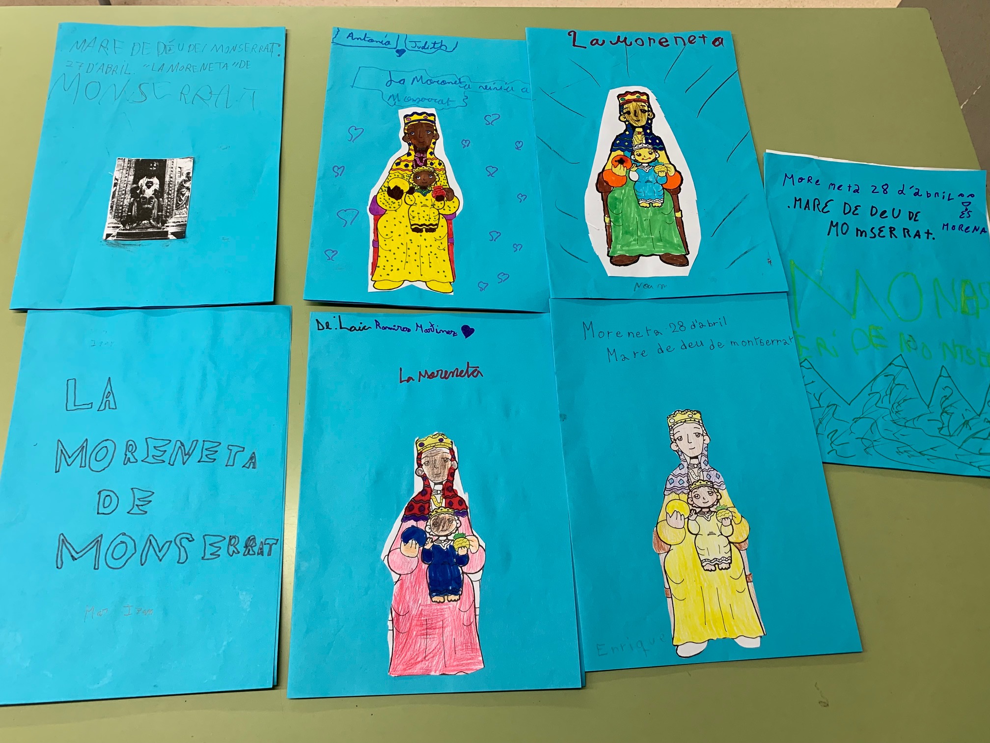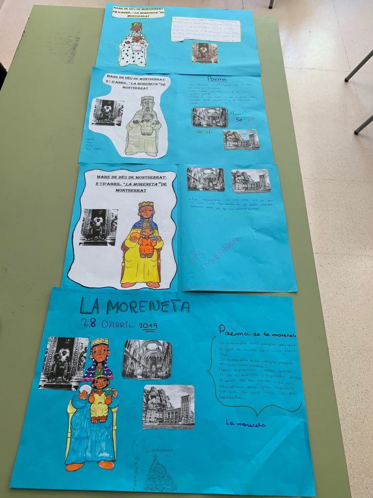 A la classe de Religió hem treballat la festivitat de Mare de Déu de Montserrat – La Moreneta- (aquest any ha sigut el dia 28 d’abril), amb l’alumnat de 3r, 4t i 6è de Primària fent una creació original i pròpia d’un llibre explicatiu (3r), fent murals explicatius (4t) i fent murals explicatius i amb creació pròpia de poemes (6è), tot amb informació sobre La Moreneta i Montserrat.