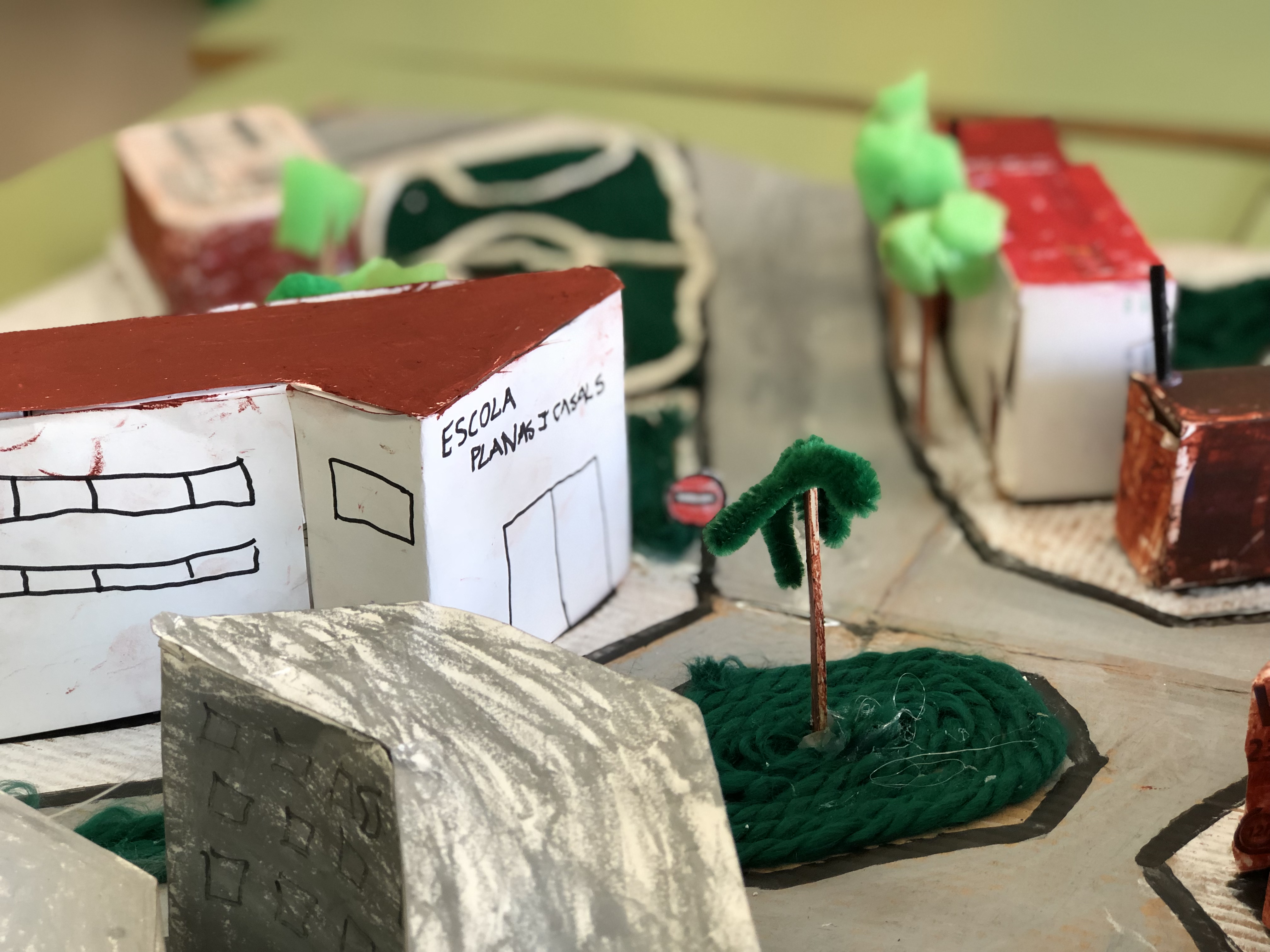 Un cop hem estudiat on vivim hem pensat fer una maqueta del voltant de l’escola. Amb la maqueta hem volgut fer els diferents tipus de cases que vam veure a l’excursió pel nostre barri. Hem hagut d’aprendre a posar senyals allà on toca, fer piscines, edificis, arbres, carreteres, antenes, el camp de futbol, l’escola…