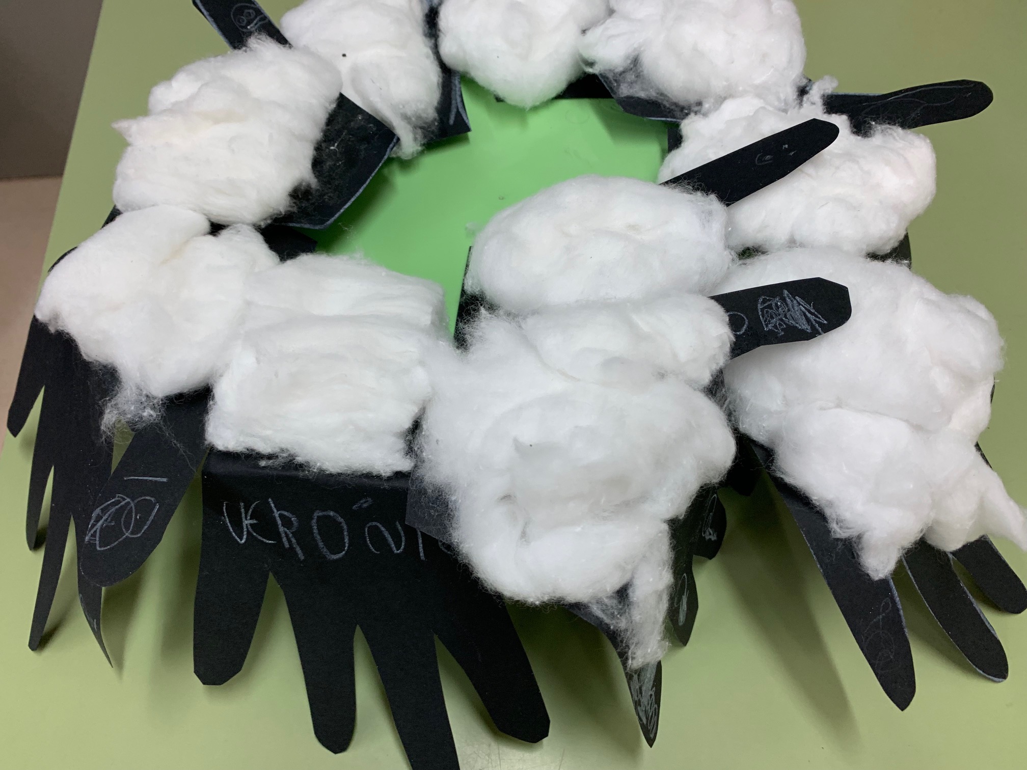 Vam llegir el conte de l’ovella perduda i hem treballat una manualitat d’una ovella, en la qual cada nen/a va decorar amb una plantilla una mà per covertir-la en una ovella. La van decorar amb cotó, per tal de fer-li la llana del cos i li van dibuixar la cara.