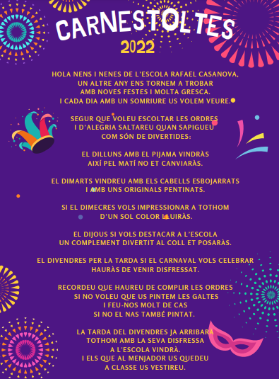 Famílies, us deixem les ordres del Rei Carnestoltes. Recordeu que son d´obligat compliment si no voleu que la cara us pintem!