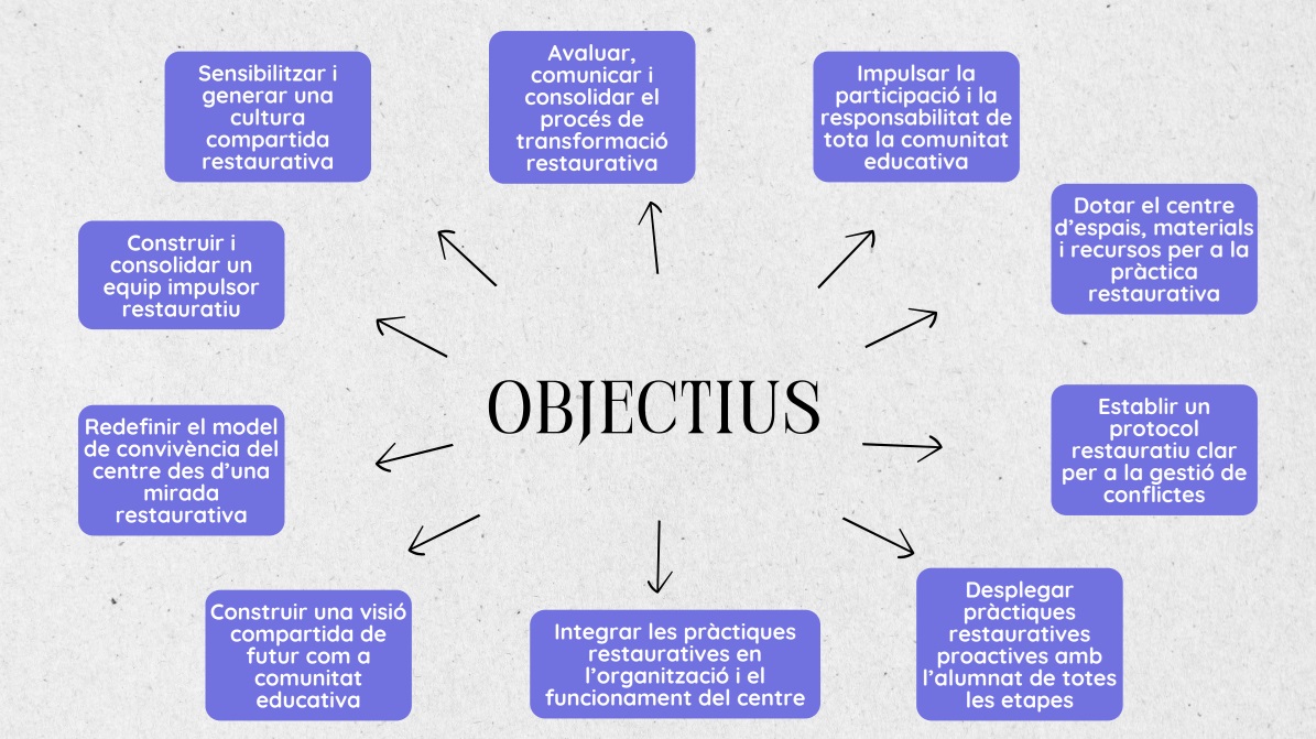 El passat dimecres 21 de gener, l’Institut Escola Renaixença va presentar al claustre el projecte d’Enfocament Restauratiu Global (ERG), una aposta de centre per consolidar una cultura de convivència basada en el respecte, la corresponsabilitat, la inclusió i la reparació. Durant la sessió es va donar a conèixer l’equip impulsor del projecte, els objectius del desplegament de l’ERG i les principals línies d’acció que s’aniran desenvolupant els propers cursos, en el marc del Projecte de Convivència del centre. També es van compartir els circuits d’actuació davant dels incidents, les faltes i els conflictes quotidians, així com els espais de coordinació, seguiment i sensibilització.