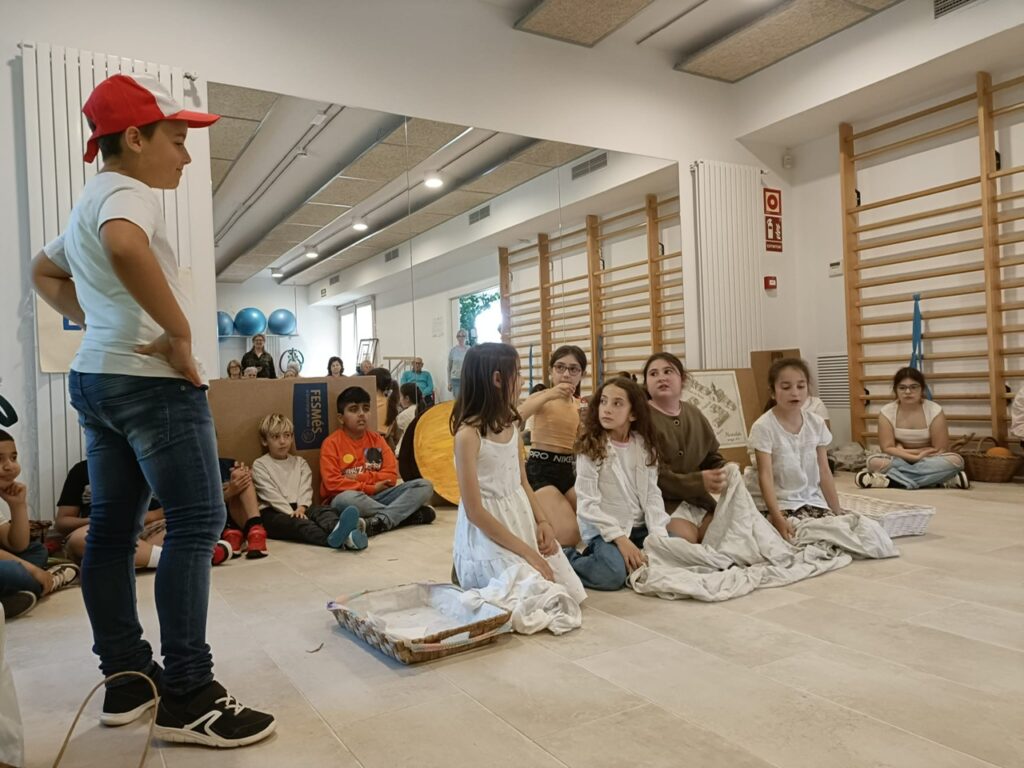 Durant el projecte, els infants van escoltar diferents històries explicades pels avis i àvies i, a partir d’aquestes, van elaborar el guió de l’obra. Han treballat el procés creatiu des del principi: creació del text, assajos i representació final.