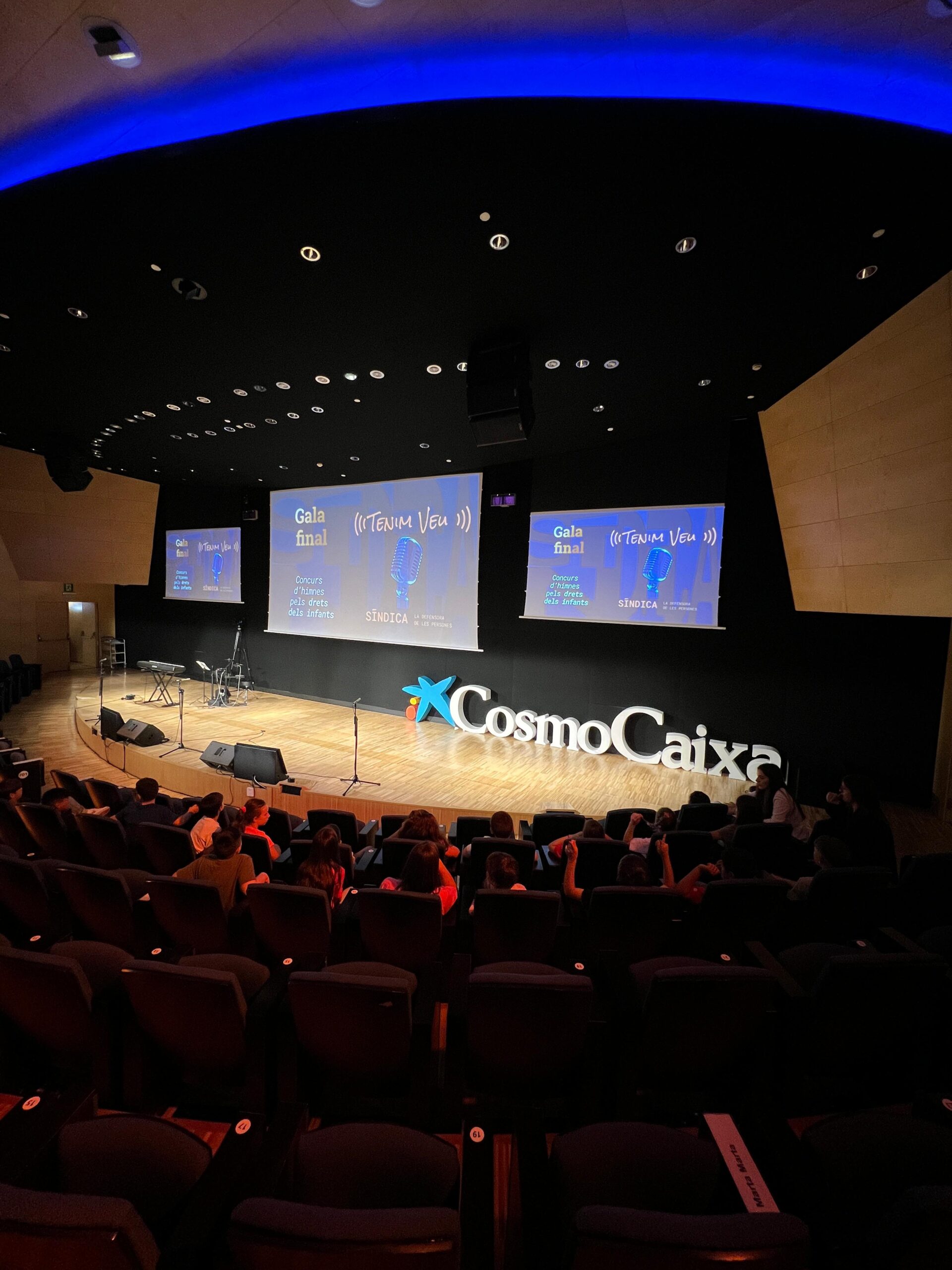 El dilluns 12 de maig va ser un dia molt especial pel grup de P5B de la nostra escola. El nostre alumnat va quedar seleccionat entre els tres millors participants del concurs “Tenim Veu”, organitzat pel Síndic de Greuges de Catalunya, i va ser convidat a la gran gala final que es va celebrar al CosmoCaixa de Barcelona.