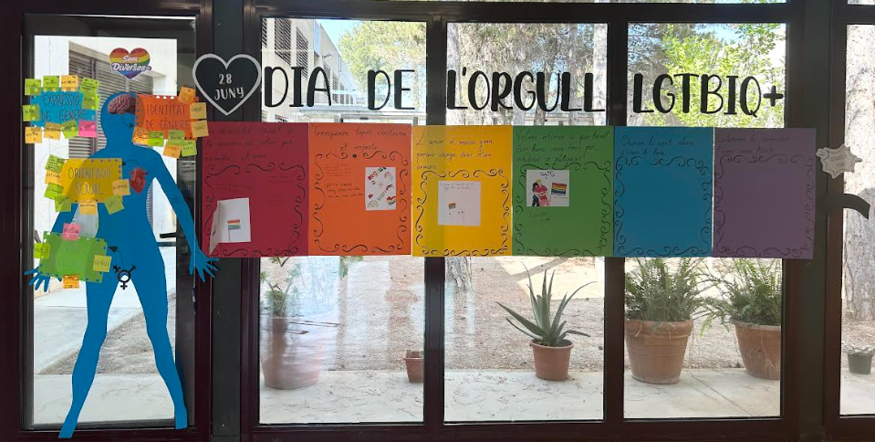A l’entrada de l’IE Renaixença s’està duent a terme una activitat de coeducació durant el mes de juny relacionada amb el Dia de l’Alliberament LGTBIQ+ (28 de juny), que és una celebració que té com a objectiu sensibilitzar i reivindicar els drets i la visibilitat de les persones LGTBIQ+.