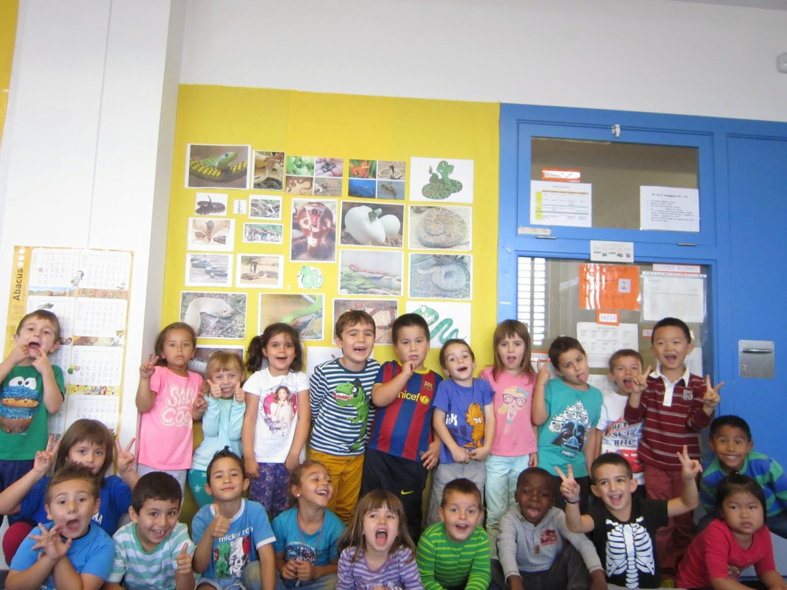 Els nens i nenes de P5B estem molt contents perquè avui ens hem fet la nostra primera foto de grup!! Oi que estem guapos??