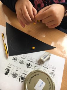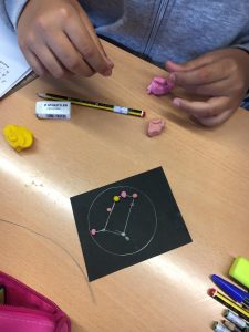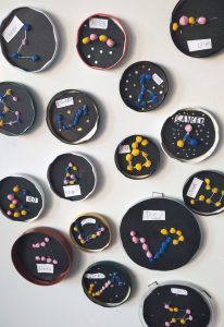 Portem uns dies treballant el bloc de les estrelles. Com neixen, com moren, com es transformen en forats negres, i hem acabat amb les constel·lacions. Alguns de nosaltres vam relacionar les figures que formen alguns grups d’estrelles amb l’horóscop o signes del zodíac. Amb això hem après que segons la nostra data de naixement ens correspon un signe del zodíac o un altre, i relacionat amb aquest fet la nostra personalitat es defineix per algunes característiques concretes… o això diuen…