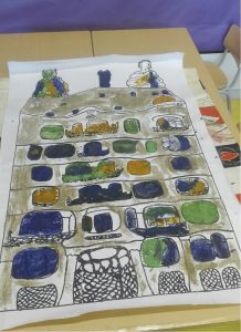 Ens van explicar qui era l’Antoni Gaudí, un conte on vam representar nosaltres els personatges de la història i vam pintar la pedrera utilitzant unes tècniques que no havíem vist fins ara. Ens ho vam passar molt bé!