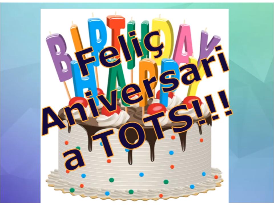 A tots els nens i nenes que feu anys al mes de març i d’abril: No ens hem oblidat de vosaltres! Ja que no podeu celebrar l’aniversari amb els vostres companys, les mestres us volem felicitar amb aquest vídeo. Esperem que us agradi. Petons i abraçades i …. MOLTES FELICITATS !! ♥ ♥