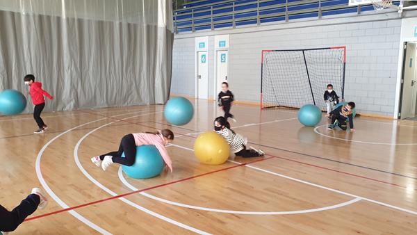 Els alumnes de 1r hem anat a fer una activitat amb pilotes gegants al poliesportiu de Bellvitge, hem fet Educació Física d’una forma diferent.
