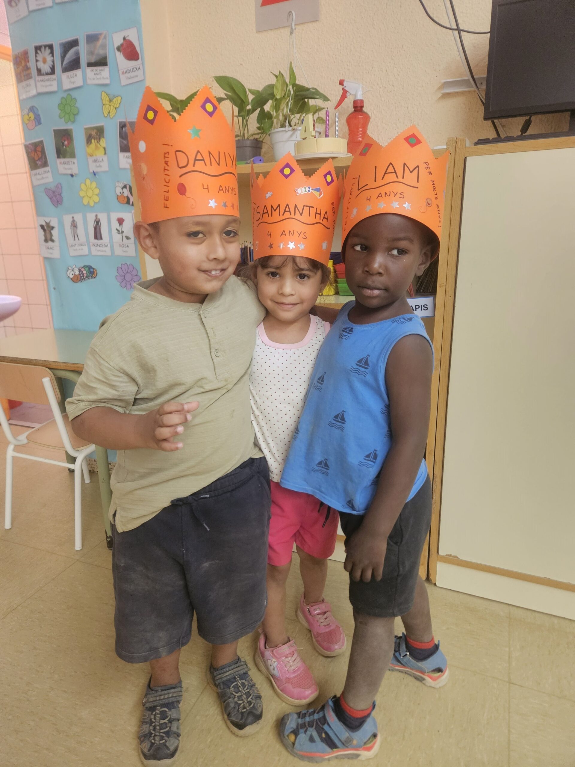 Avui els infants de la classe dels peixos han celebrat els aniversaris dels que compleixen a l’estiu (Daniyal, Liam i Samantha). Hem fet una petita festa ballant i cantant i ens ho hem passat d’allò més bé.