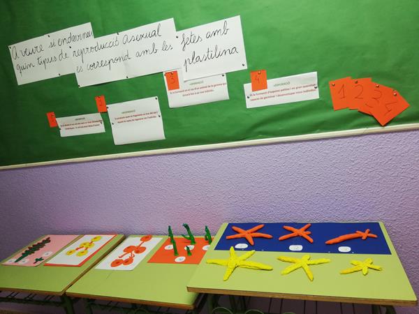 N’hi ha de diferents tipus: per bipartició, per esporació, per gemmació i per regeneració. Aquí estem representar-los amb plastilina.