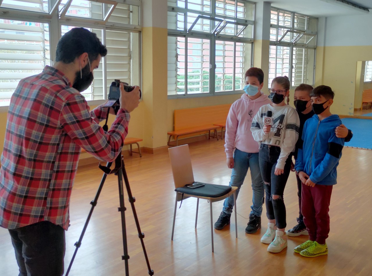 Unes setmanes després, va vindre un periodista a l’escola que va entrevistar l’Olga. A més, cadascú va explicar una part del tema. Estàvem molt nerviosos. Teníem por de no fer-ho bé, però com que no estàvem en directe si ens equivocàvem, es podia editar després.
