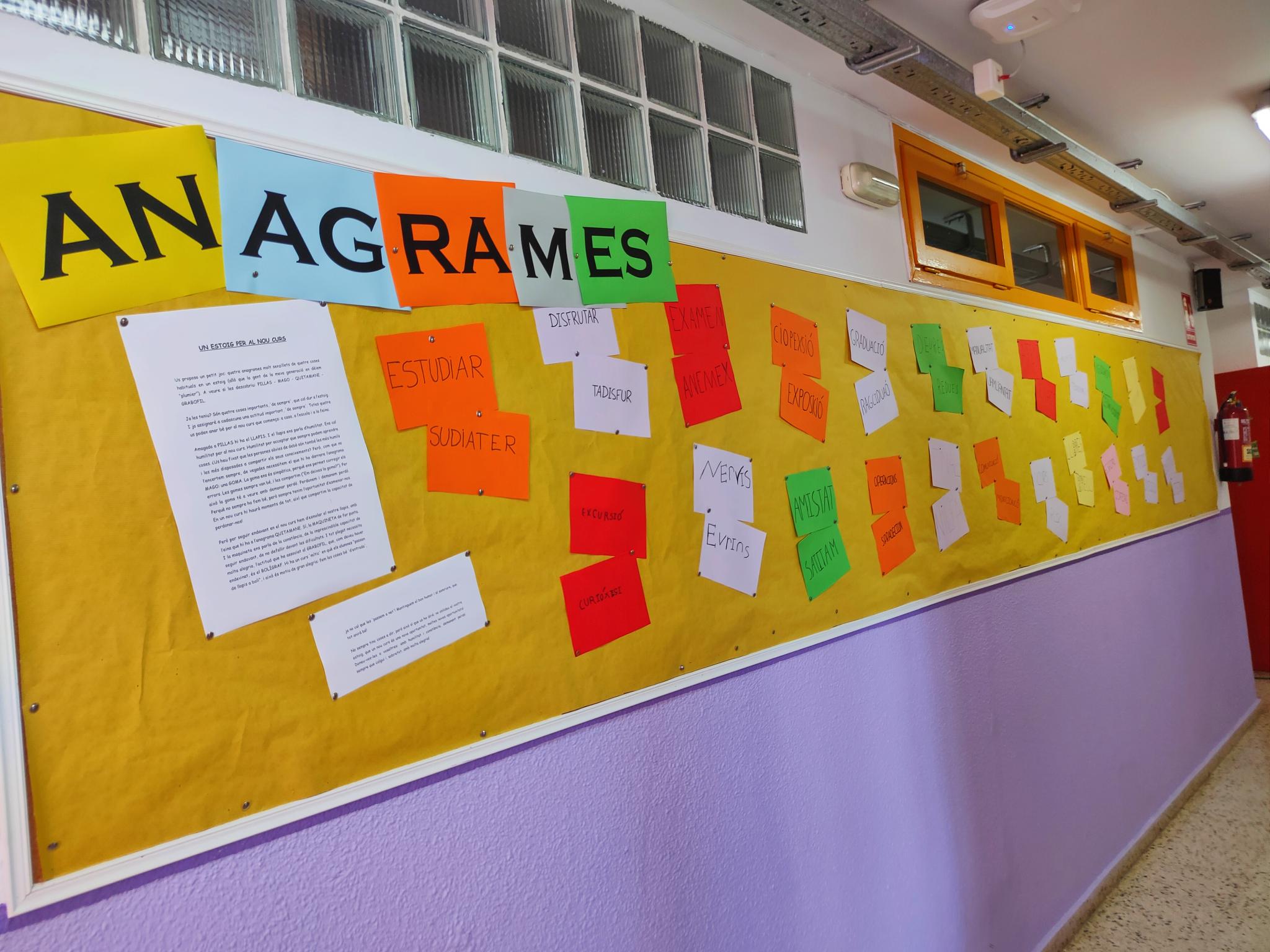 Per nosaltres és l’últim any al Ramon Muntaner. El primer dia vam fer una lectura que es deia “Un estoig per al nou curs”. Parlava de les il·lusions amb les que es comença un any ple de canvis. Al text hi havia anagrames, que són paraules amb les mateixes lletres que una altra, però en un ordre diferent.