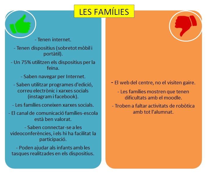 Des de l’escola hem fet una diagnosi a nivell digital, a través d’uns formularis de google forms destinats a alumnes, famílies i professorat.