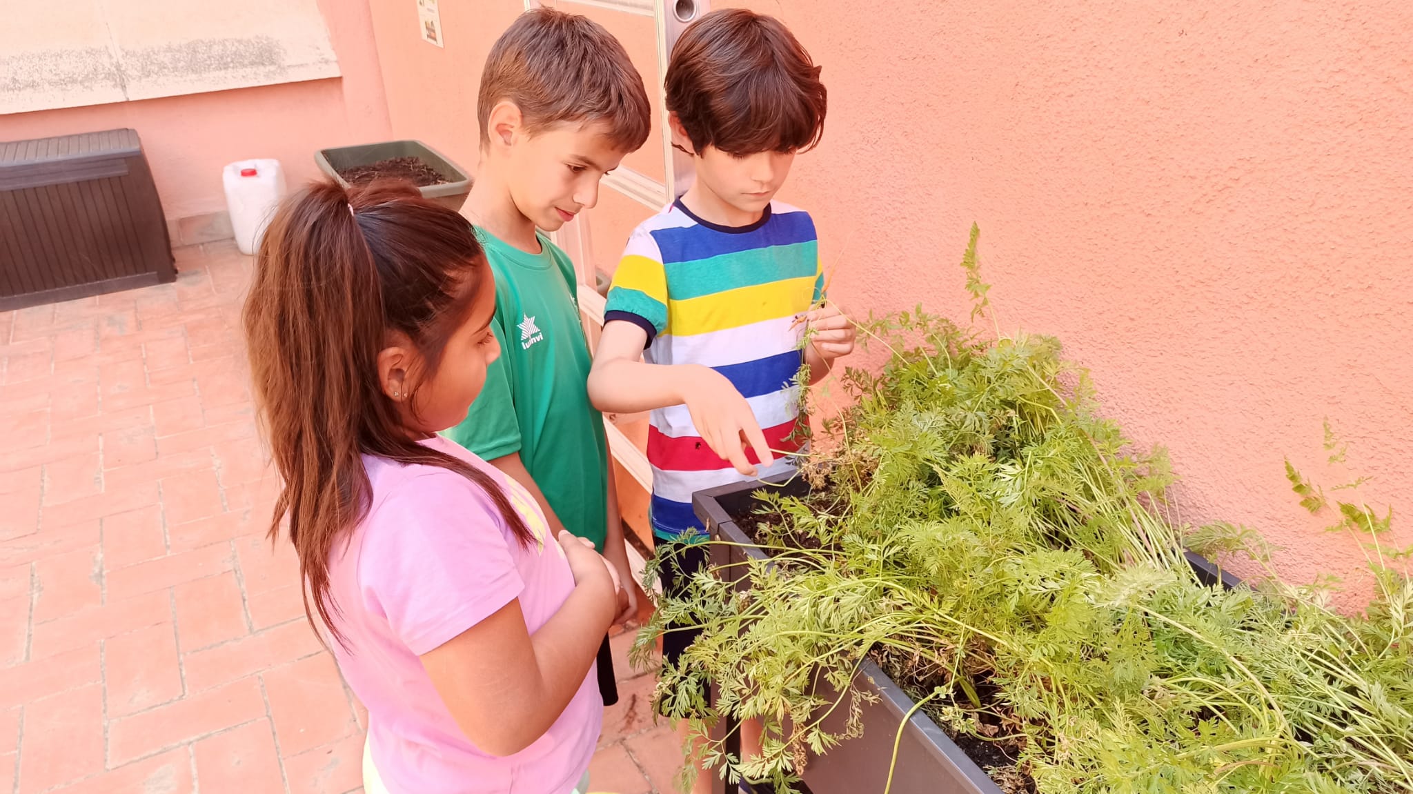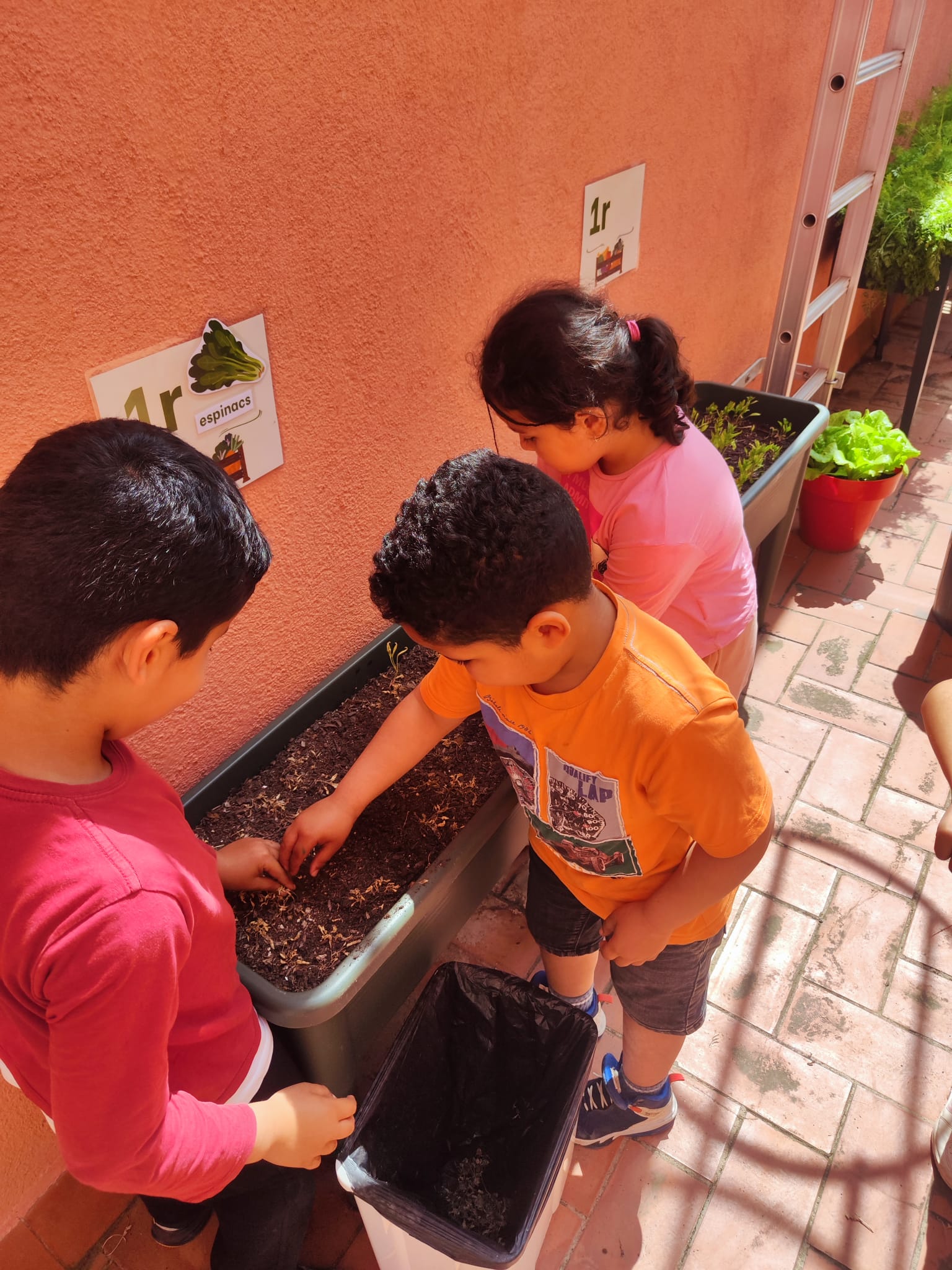 1r: Els espinacs requereixen paciència i encara no els podem collir. Tot i això, els seguim observant i regant com cal. A més, hem plantat de nous, perquè a causa de la calor s’havien pansit. Per cert, els enciams ja han crescut força. Quin goig!