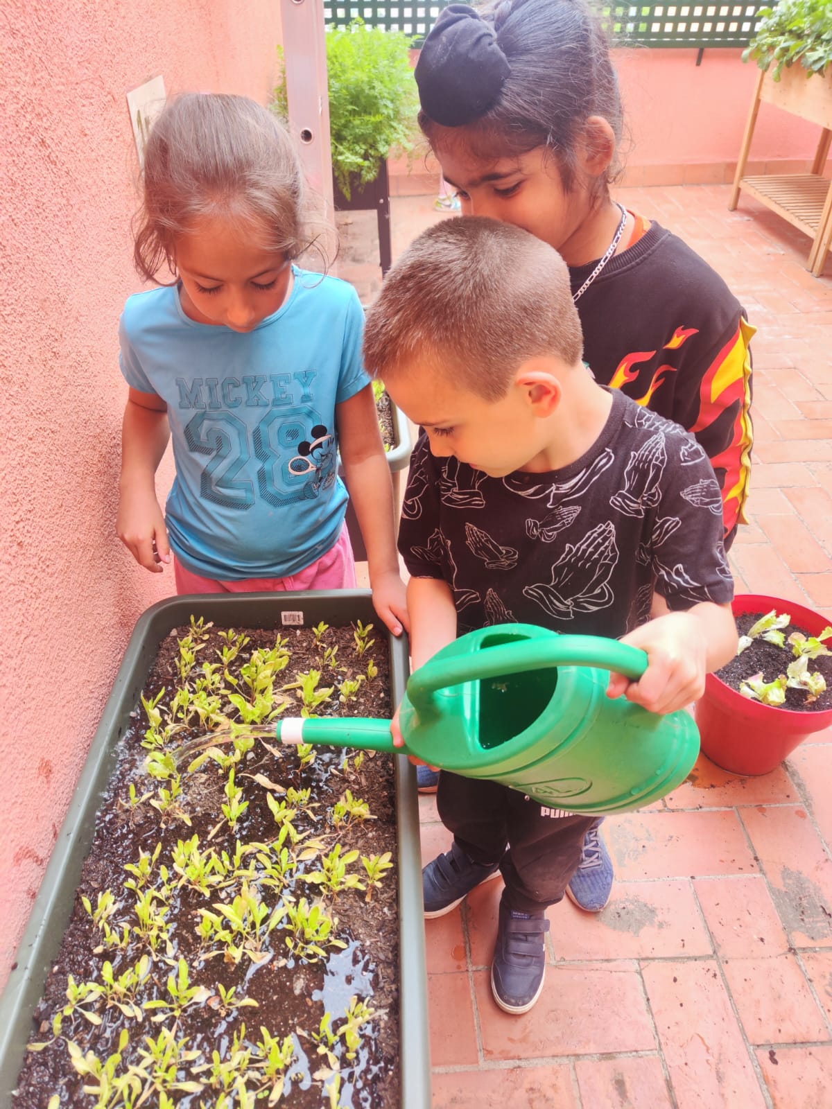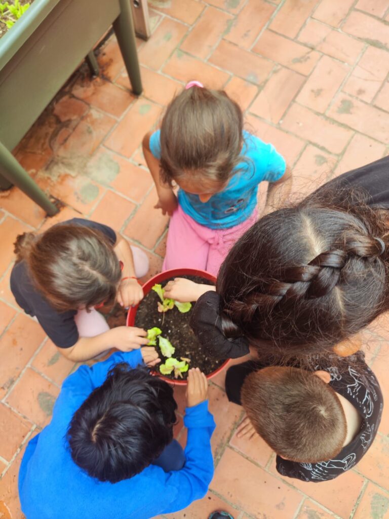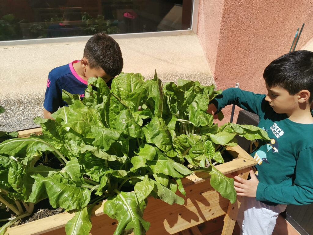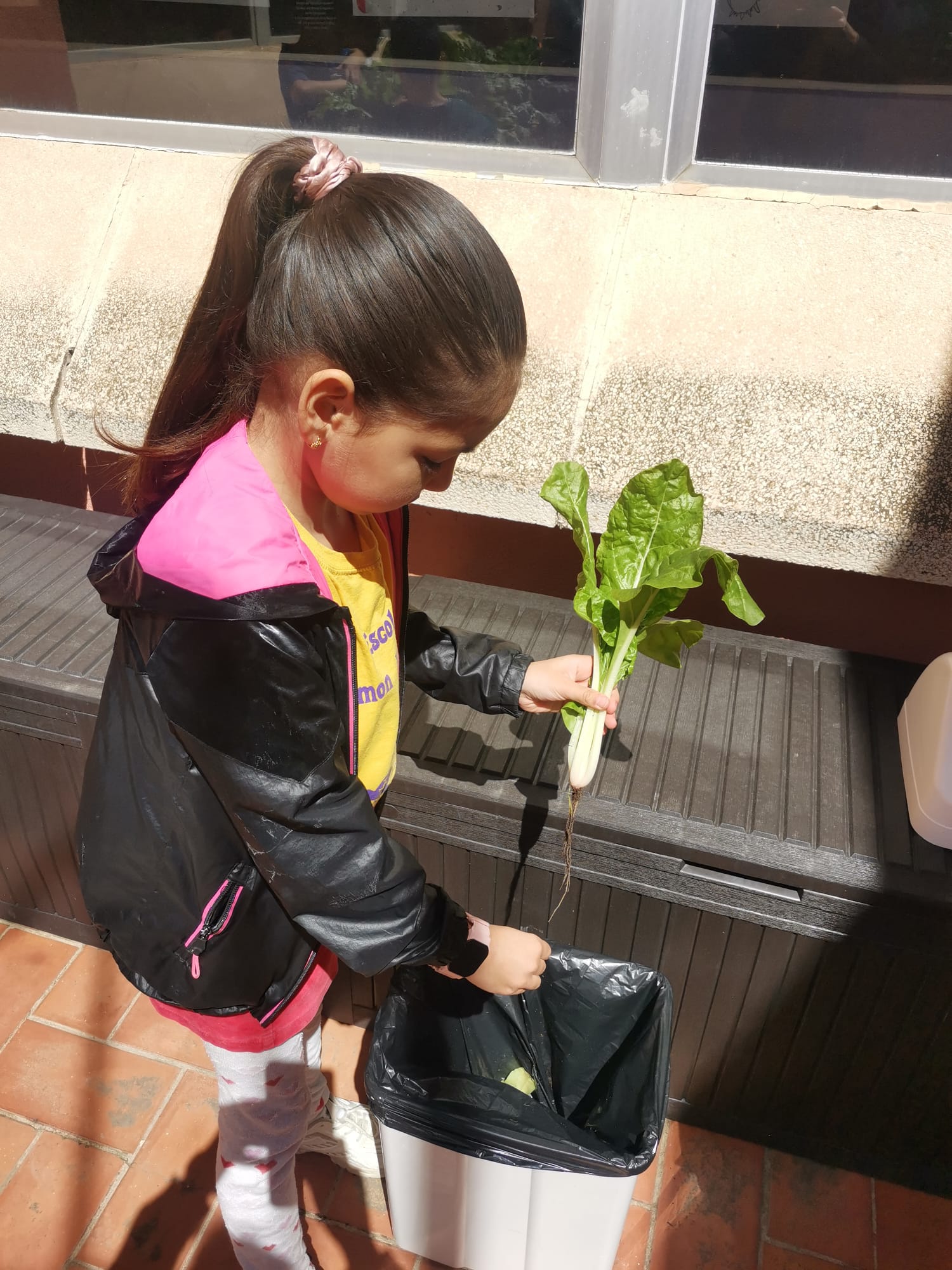 Aquesta setmana continuem amb la plantació i la collita de les hortalisses i verdures, les quals les hem portat a la cuina de l’escola. Quin goig! També hem transplantat enciams!