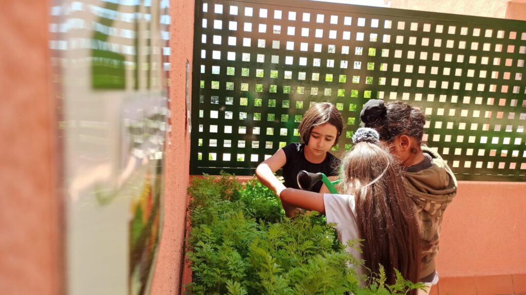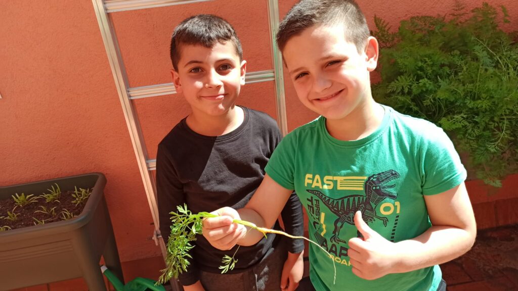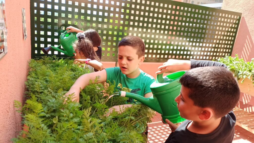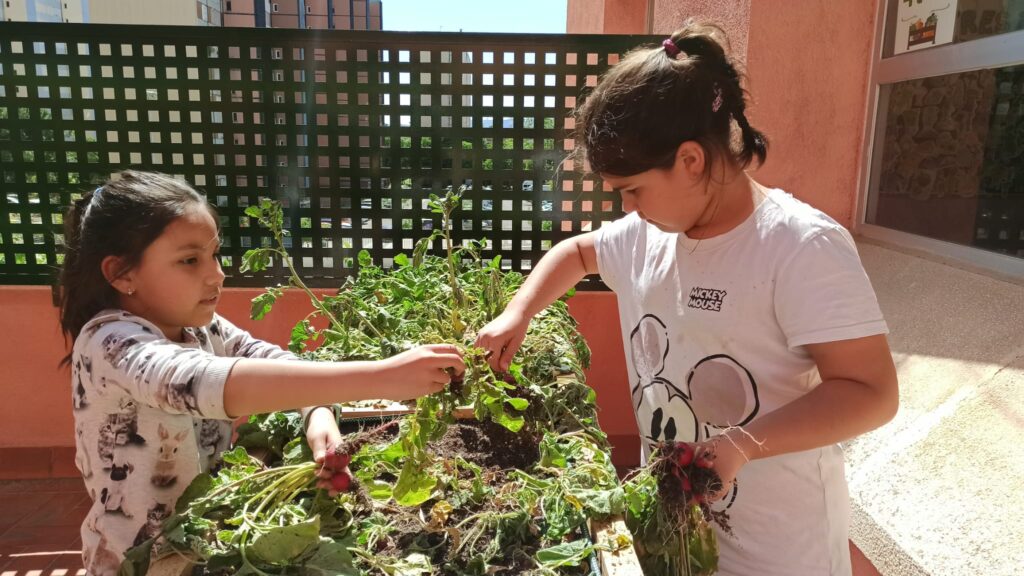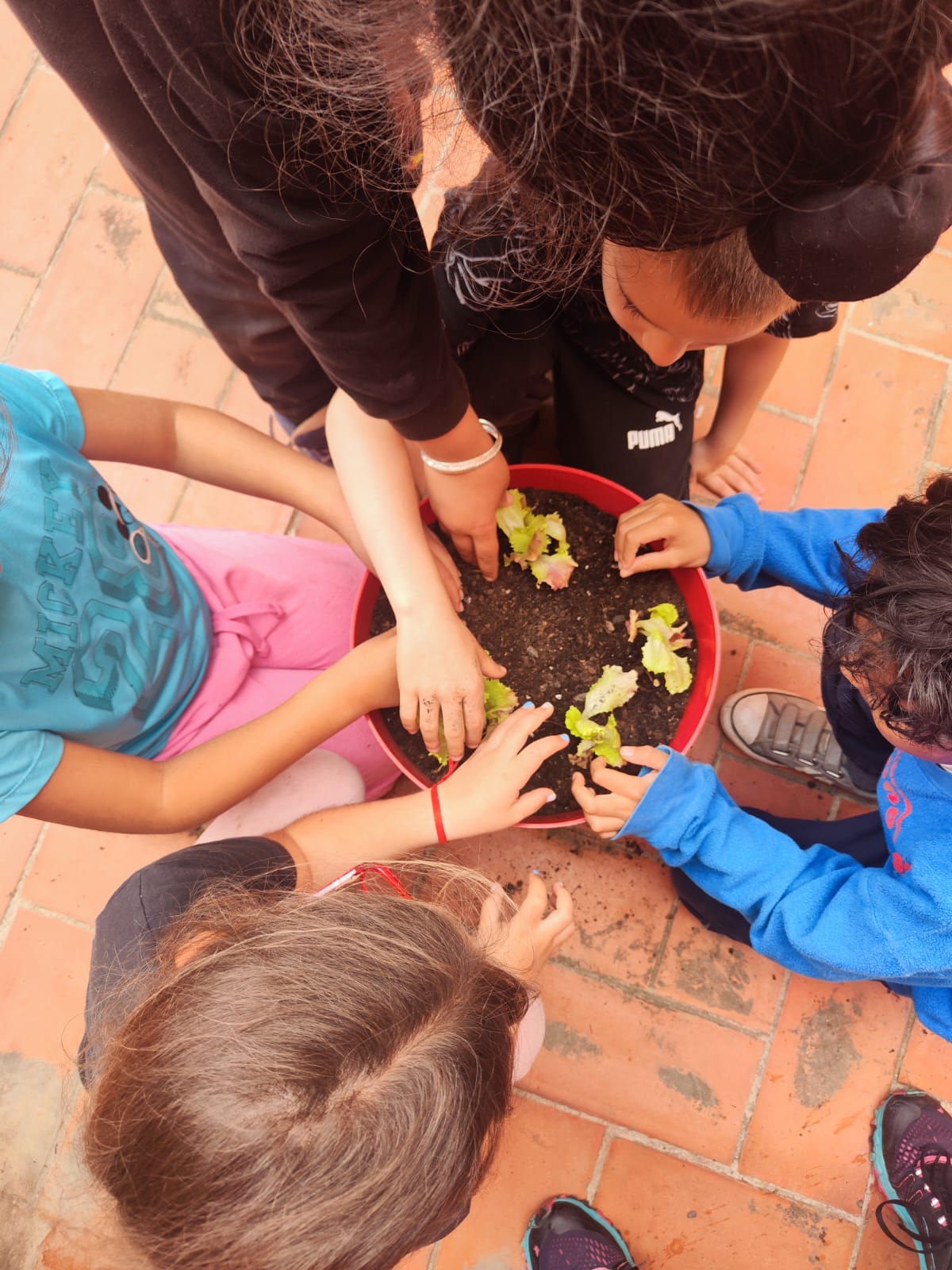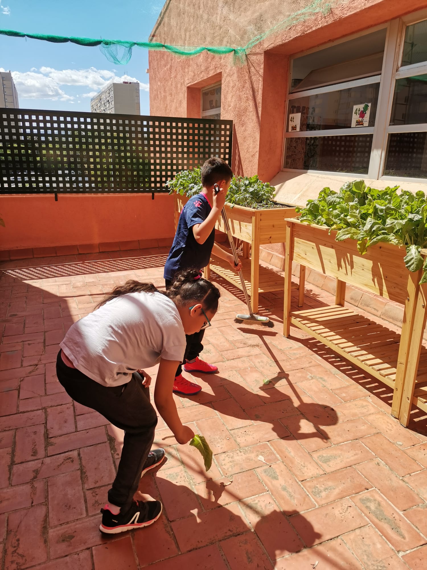Aquesta setmana continuem amb la plantació i la collita de les hortalisses i verdures, les quals les hem portat a la cuina de l’escola. Quin goig! També hem transplantat enciams!