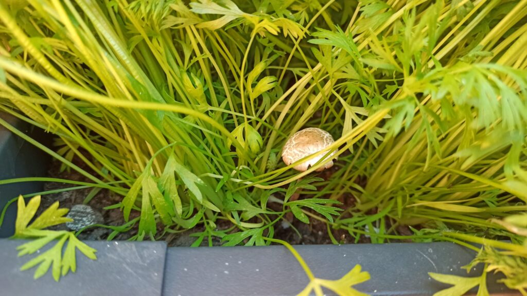 Sabeu què? Hem observat que han crescut bolets enmig de les pastanagues!