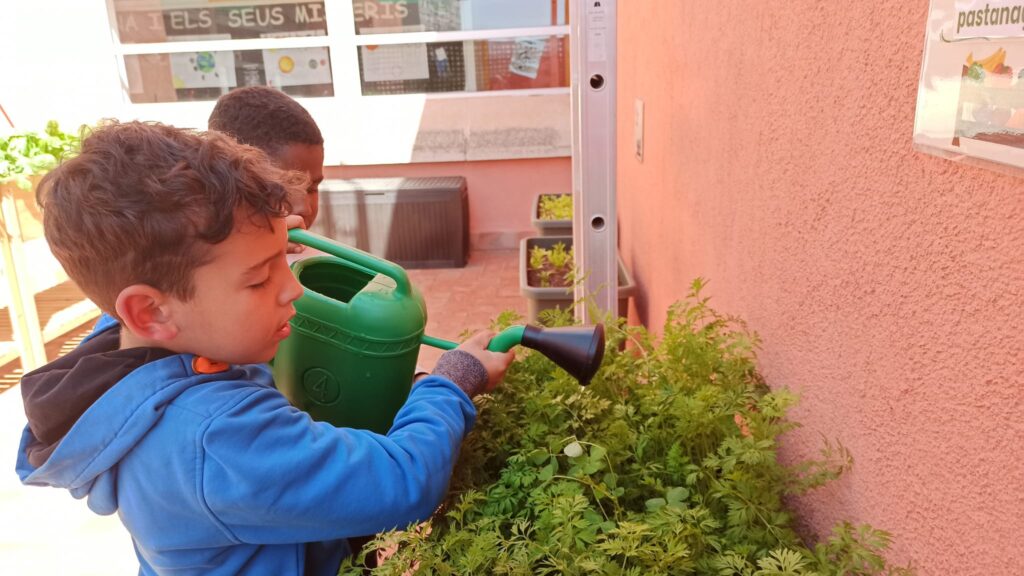 Aquesta setmana continuem amb la plantació i la collita de les hortalisses i verdures, les quals les hem portat a la cuina de l’escola. Com ens agrada!