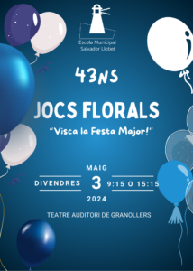 Els XLIII Jocs Florals de l’E.M. Salvador Llobet són a tocar, el divendres 3 de maig de 2024, ja ha començat el compte enrere fins a la nostra gran celebració!
