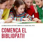Benvolgudes famílies. Us informem que a partir d’avui dilluns 20 de gener del 2020, iniciem l’activitat de “Bibliopati”. És una activitat que pretén fomentar, motivar i engrescar l’hàbit de la lectura a la biblioteca a les hores del pati els dilluns, els dimecres i els divendres amb l’assessorament d’un membre de l’equip docent.