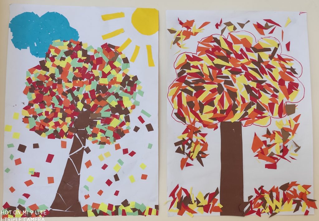 Durant aquest primer trimestre de curs, i en horari de Plàstica, l’alumnat de 5è.C ha creat un collage de la tardor. Inicialment, han dibuixat diferents paisatges naturals amb arbres i després hi han enganxat retalls de paper amb els colors propis d’aquesta estació (grocs, ocres, taronges, marrons, vermells…). Tots hem quedat captivats a l’observar l’espectacle dels colors de la natura en aquesta época de l’any.
