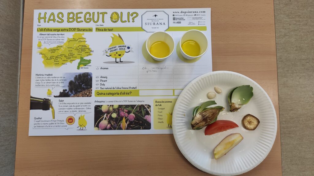 Amb aquest taller experimental, els nens i les nenes també han après a percebre les diferències sensorials entre un oli d’oliva i un oli d’oliva verge extra i a identificar paràmetres tals com els aromes en nas i el sabor en boca.