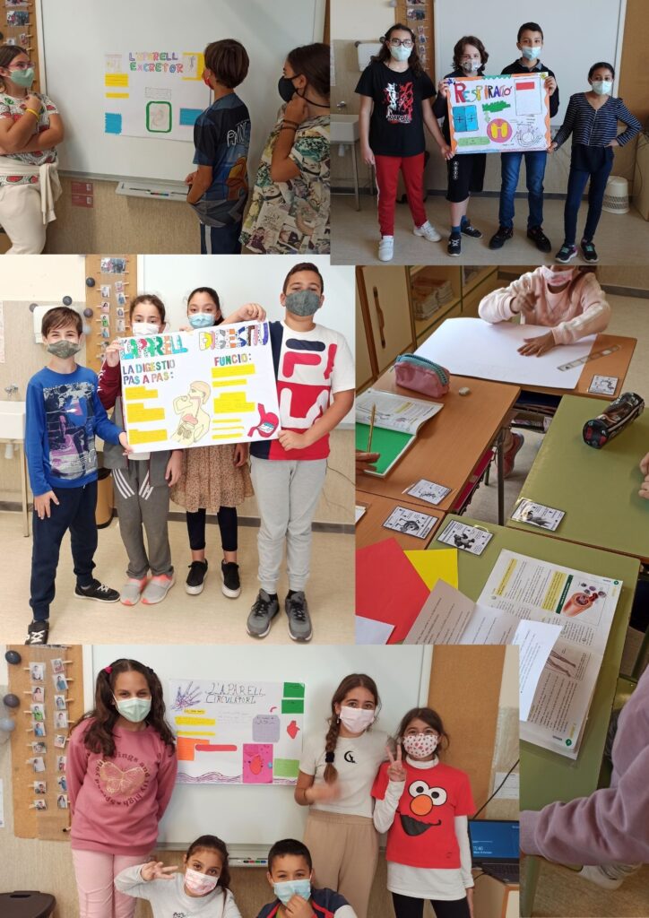 Els i les alumnes de 6è han treballat de manera cooperativa per investigar sobre la nutrició humana i els aparells que hi intervenen. El projecte ha finalitzat amb aquests pòsters tan ben executats que han fet servir per exposar el contingut treballat a la resta de companyes i companys. Ho han fet genial!