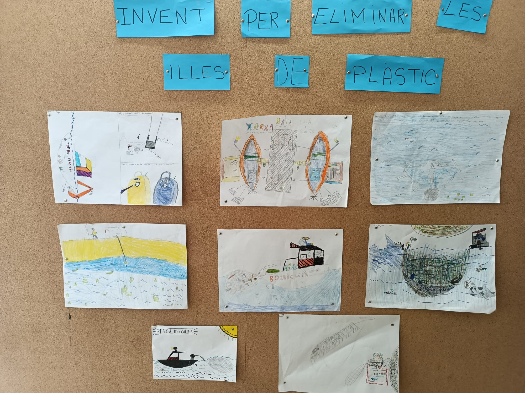 Hem estat investigant com podem evitar que el problema creixi i som molts conscients de la necessitat de reciclar, reutilitzar, reduir, rebutjar… Però amb això no en teníem prou i avui ens hem posat a dissenyar uns invents que ens poguessin ajudar a eliminar les illes de plàstic. Ens hem posat per parelles i cadascú ha dissenyat la seva proposta. Han sortit idees diferents i molt originals.