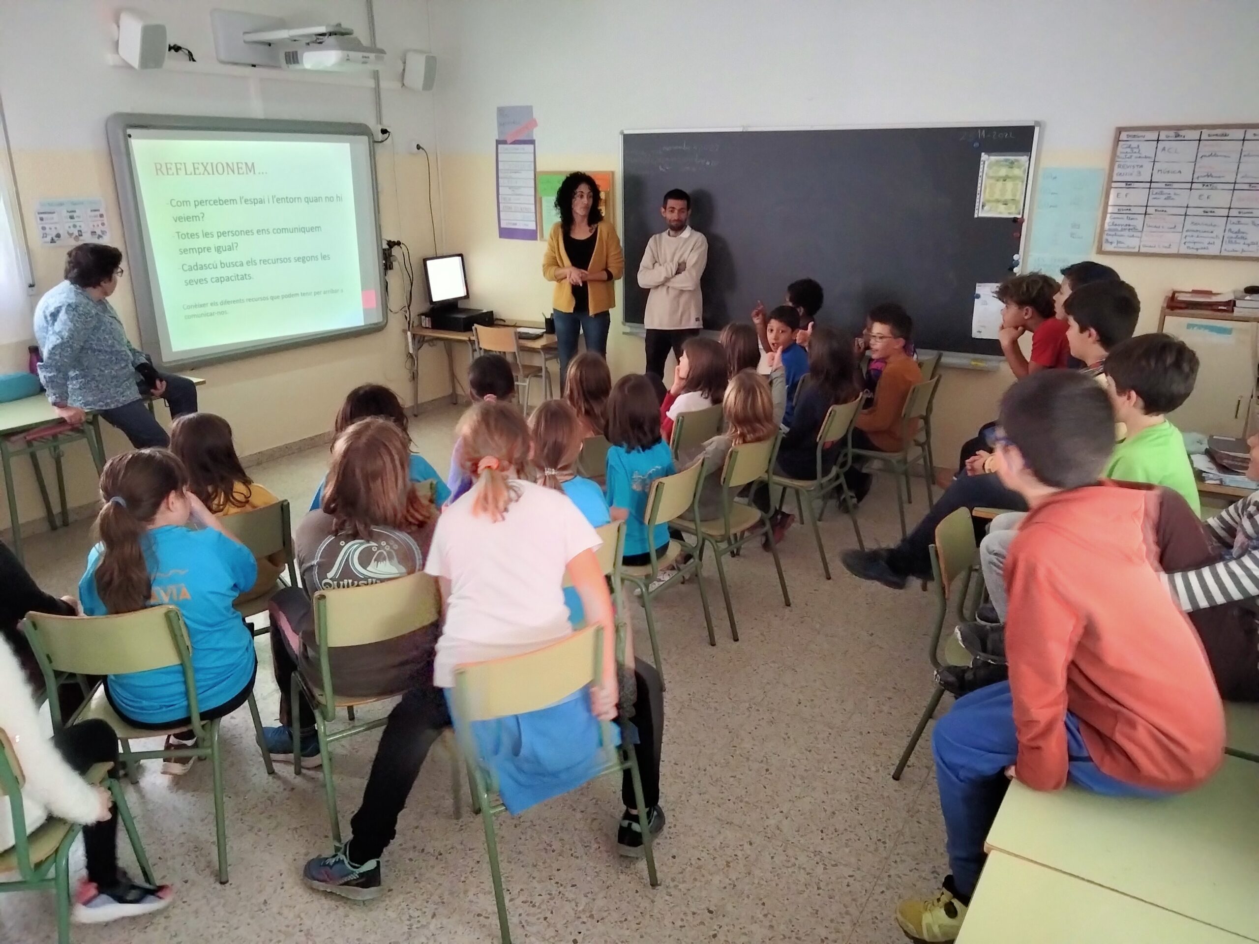 El dimecres 23 de novembre a la tarda vam rebre una visita molt interessant: la Sílvia, l’Anna, el Jose i la Sandra ens van explicar què fa la Fundació Pro Disminuïts Psíquics del Berguedà. Ja porten 50 anys treballant i ho estan celebrant!
